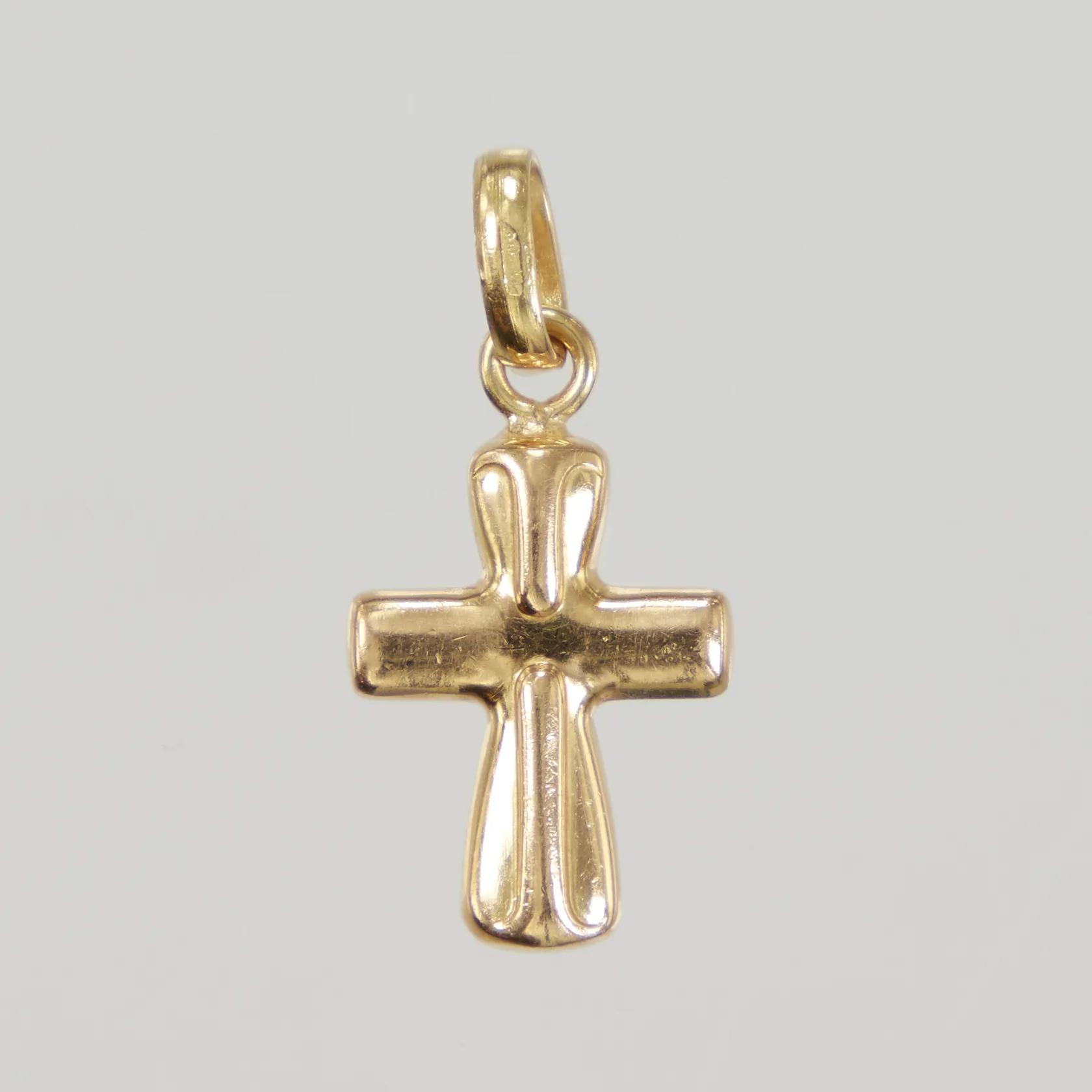 Hänge kors längd inklusive ögla 23mm, bredd 11,3mm, 18K, Vikt: 1,1 g.