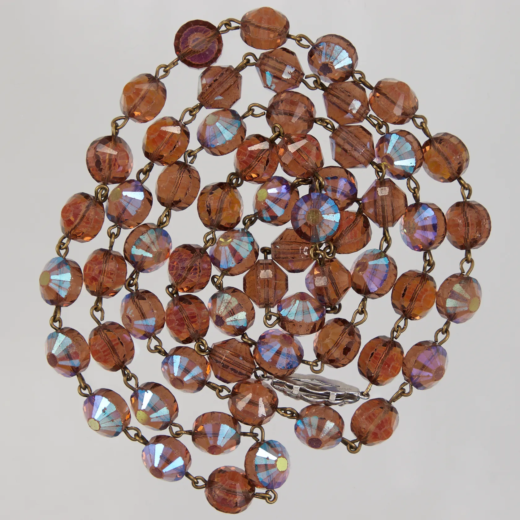 Collier med bruna stenar, längd 92cm, bredd ca 10mm, lås i silver, fäster ej, bruttovikt: 83,13g