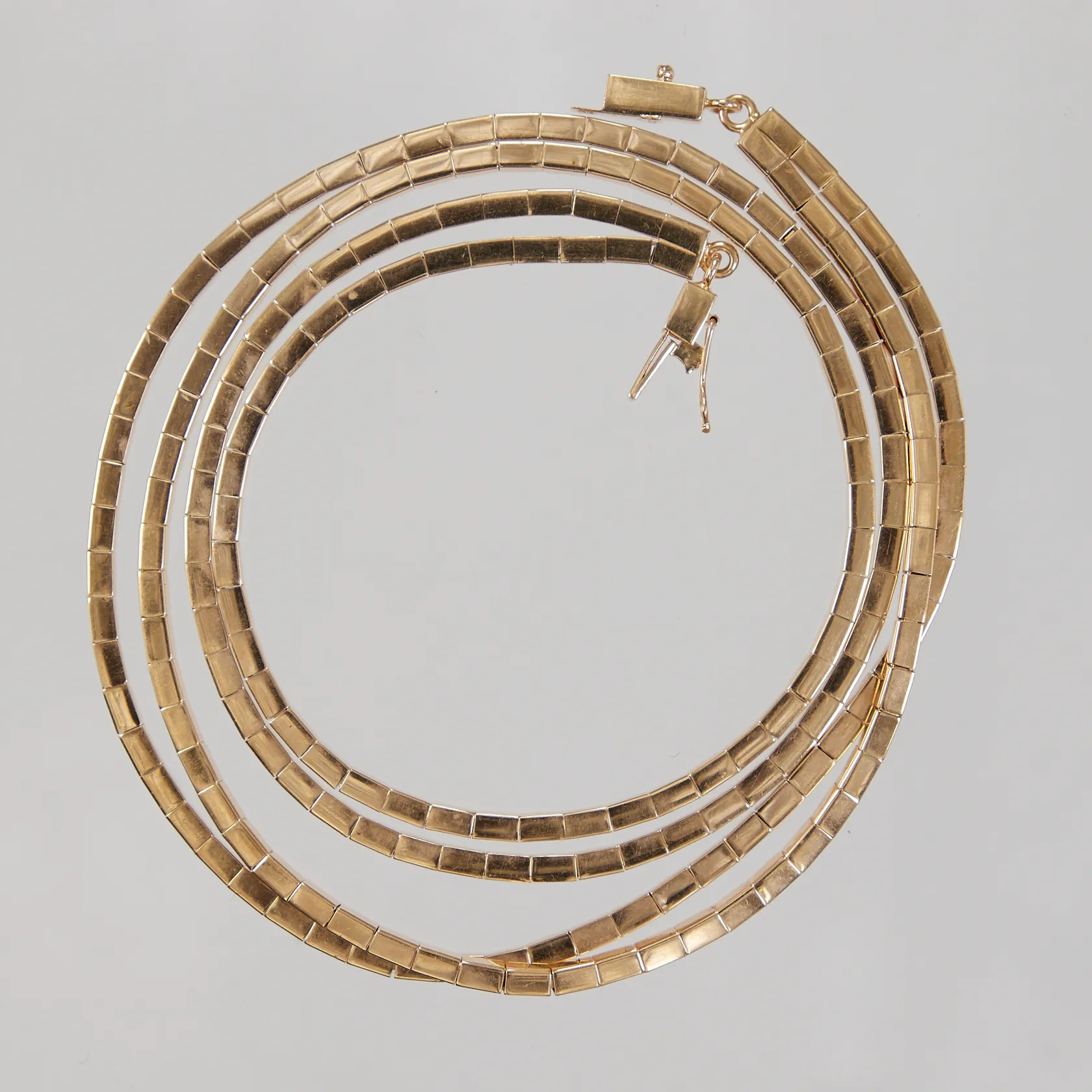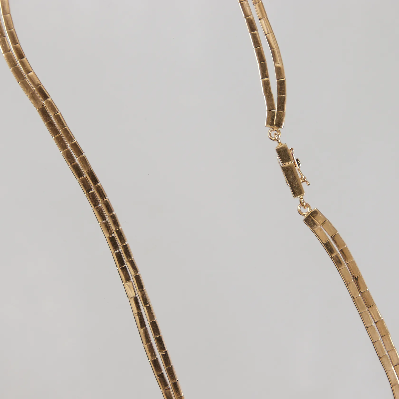 Collier, tvåradigt, längd ca 40cm, bredd 2,5mm, 18K Vikt: 46,5 g.