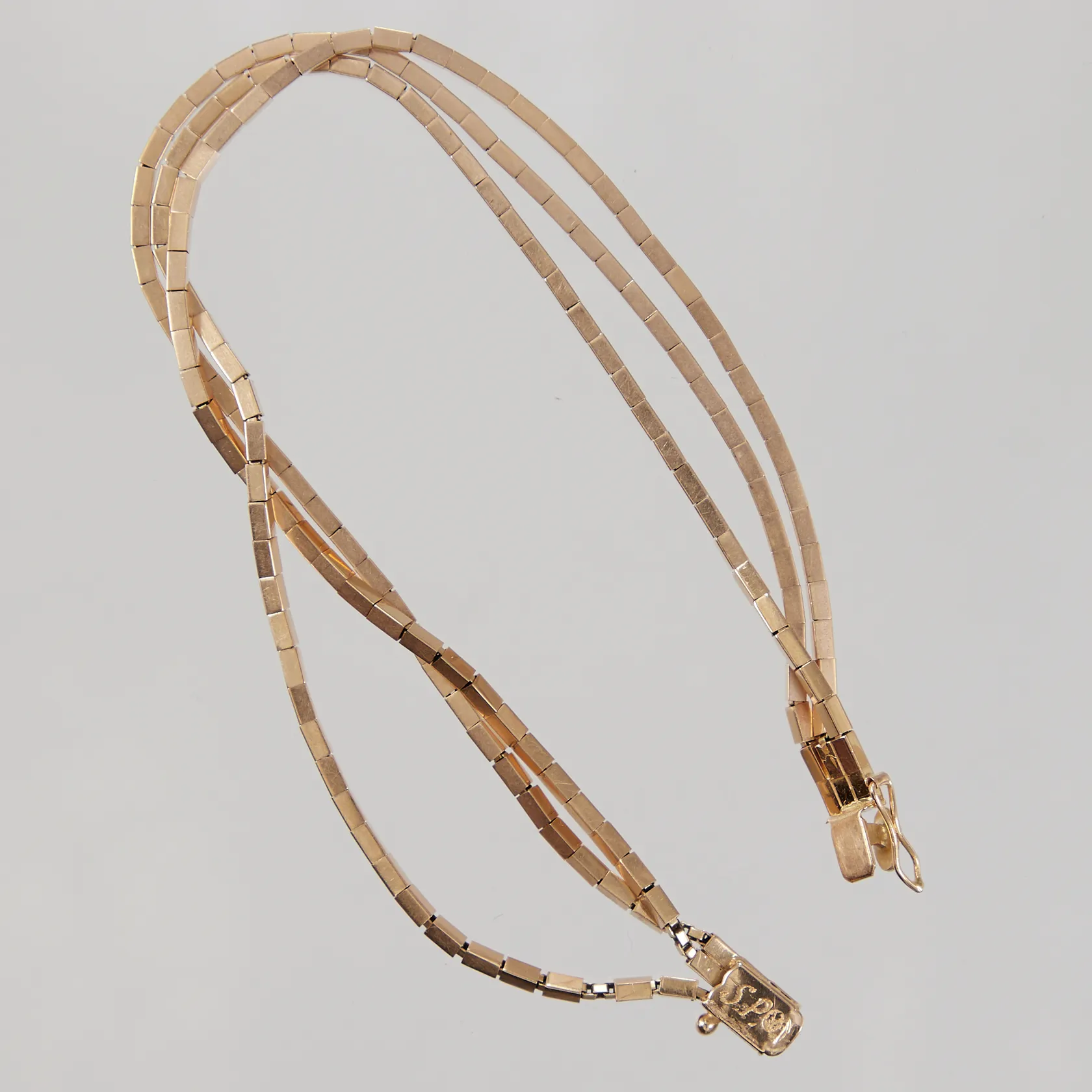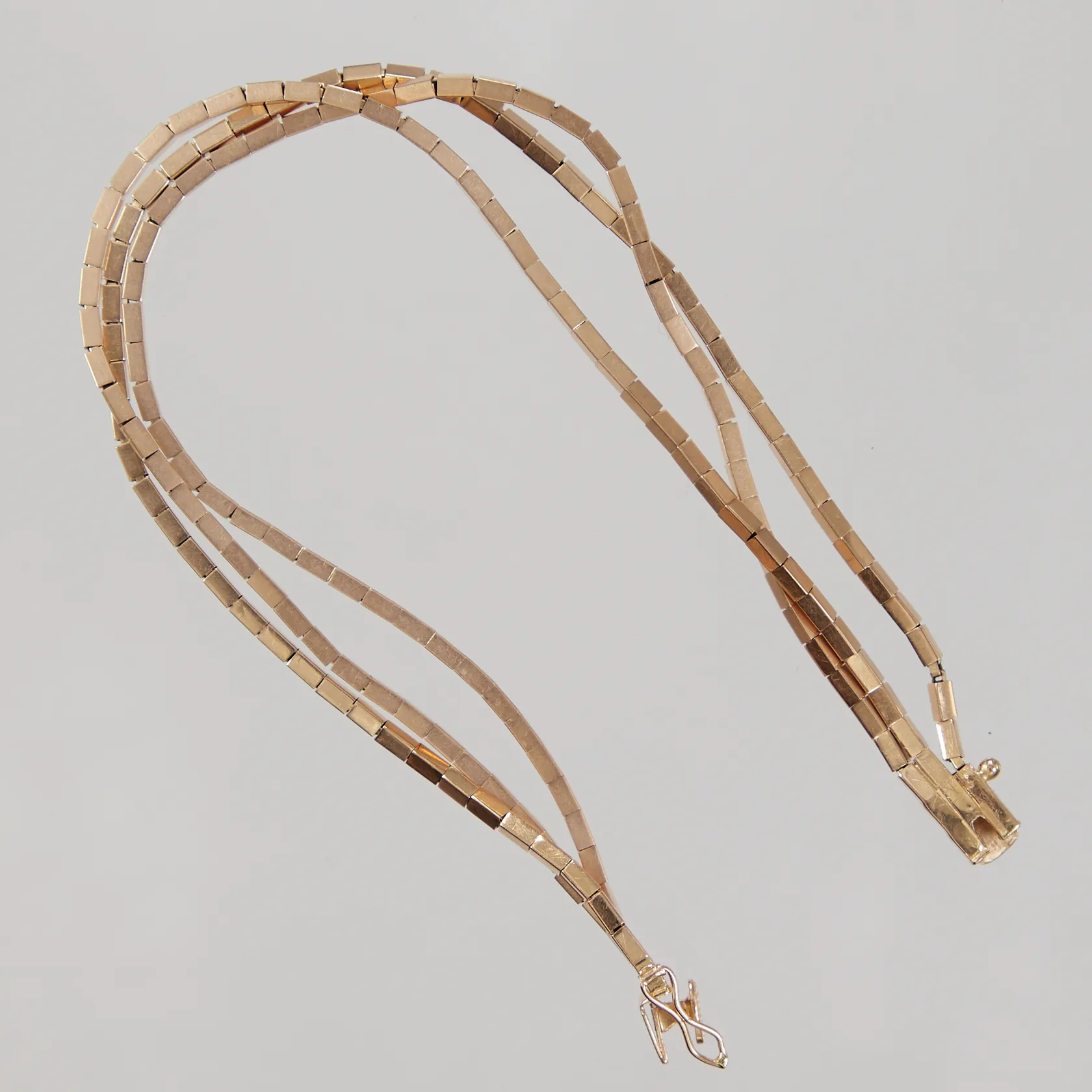 Armband, treradig modell med stavar på venezia länk , kistlås, längd 19,5cm, bredd 5mm, 18K Vikt: 17,6 g.