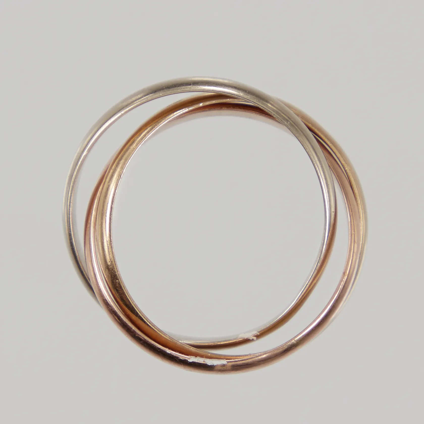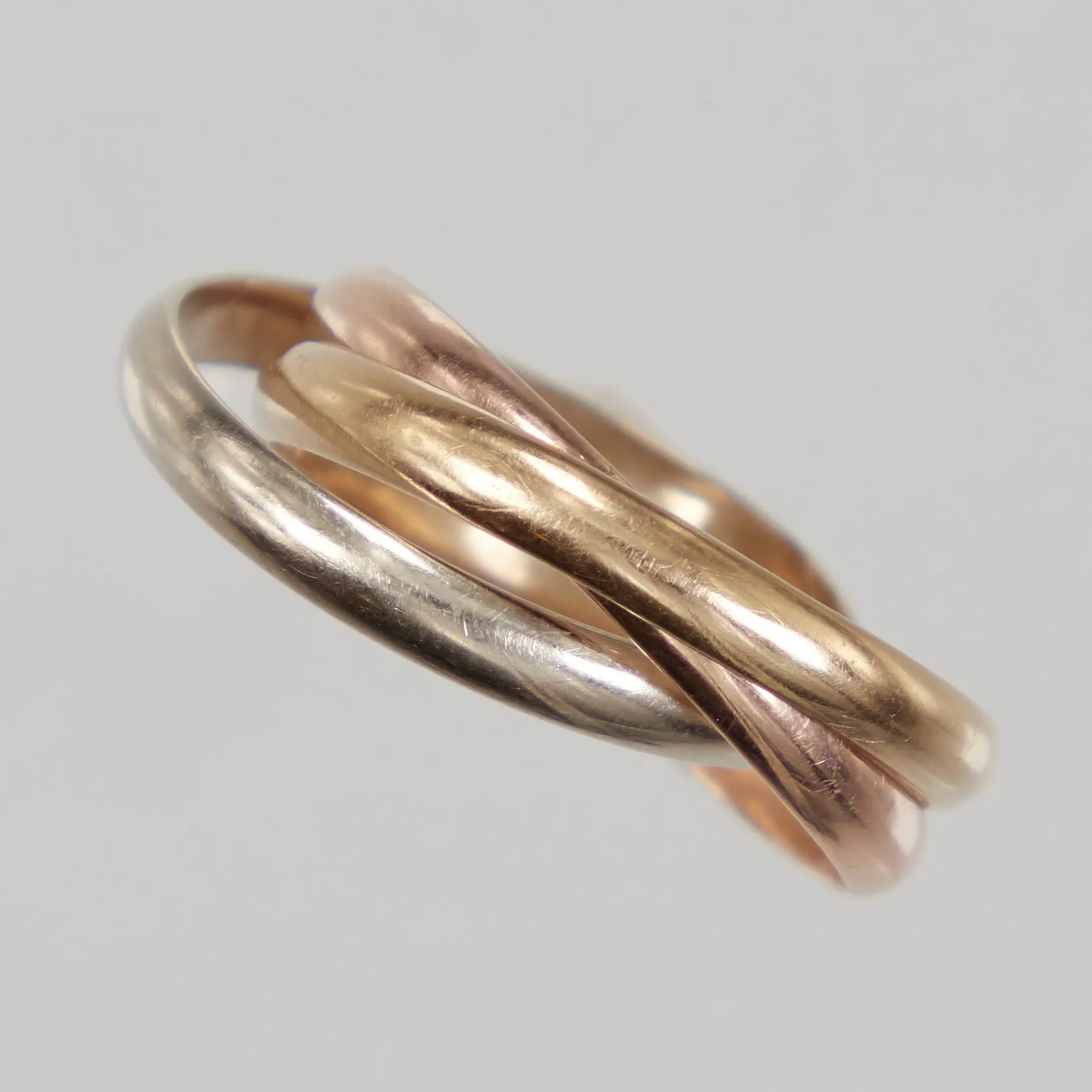 Ring tredelad stl 17¾, bredd 2,7mm, trefärgat, 18K Vikt: 5,7 g.