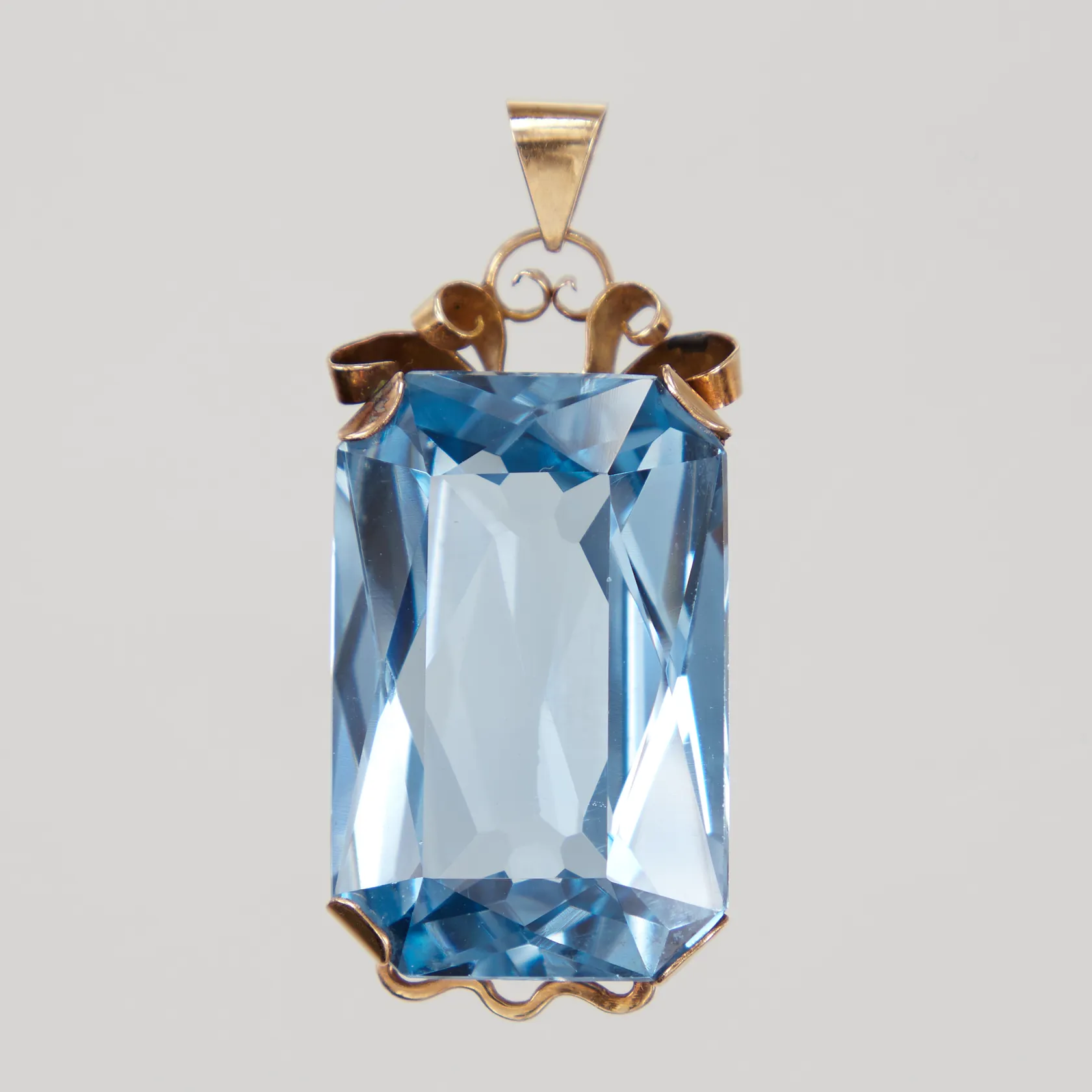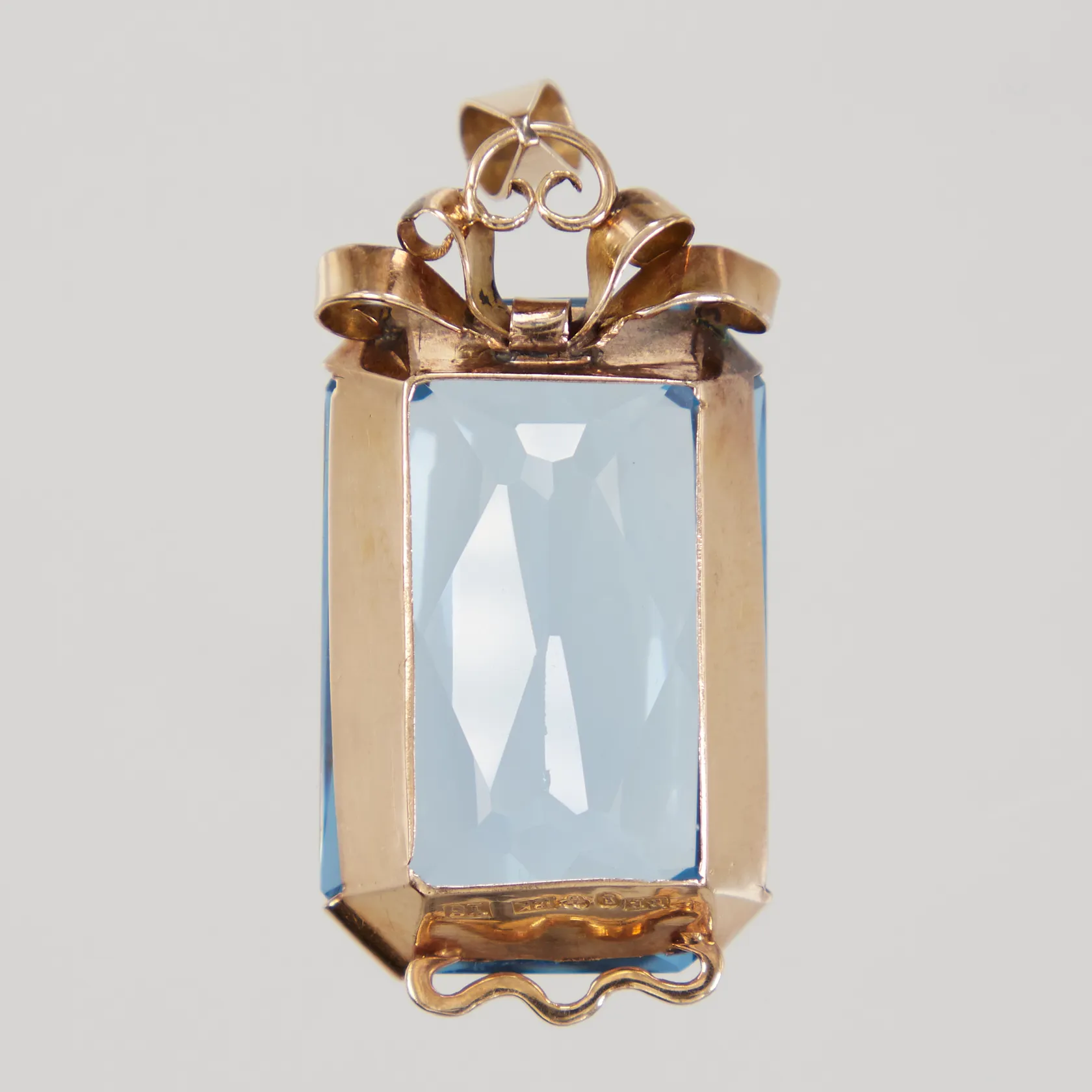 Hänge med blå sten, längd43mm , bredd 18mm, 18K, Pinco Förening U P A år 1949, 18K. Bruttovikt:13,3g. Vikt: 13,3 g.