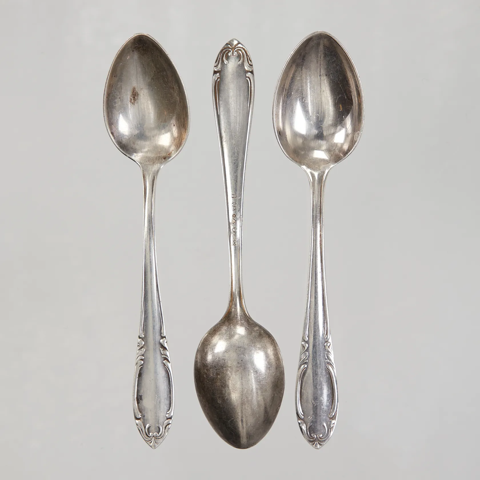 3 Kaffeskedar 11,2cm, modell Slottsbarock, CGH, silver 830/1000 Vikt: 41,9 g.