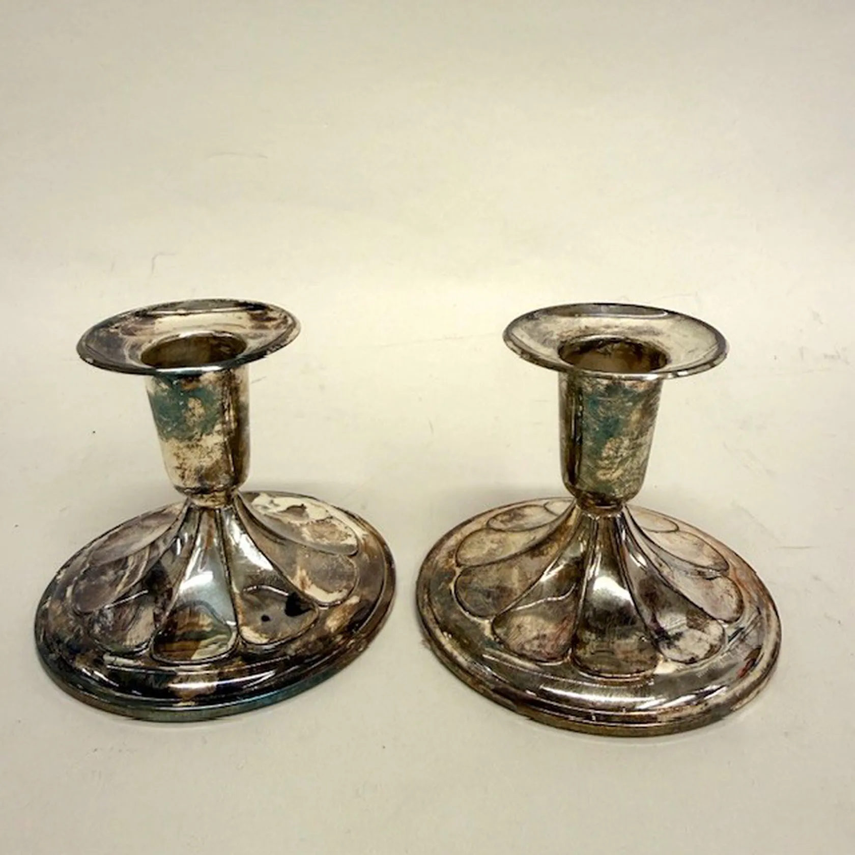 Ett par ljusstakar med dekor i relief