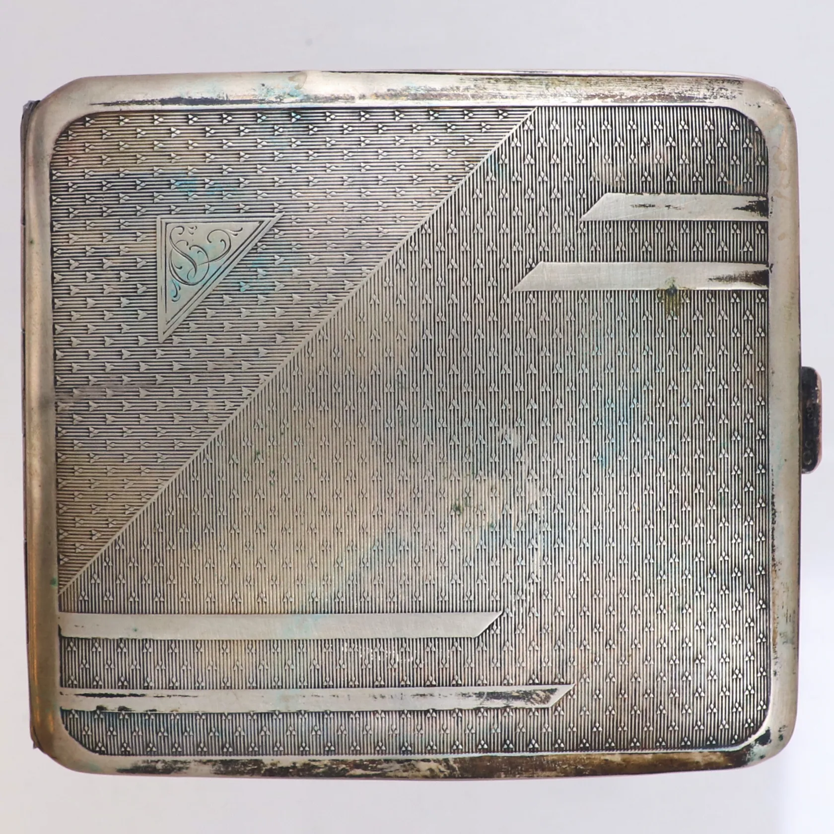 Cigarettetui med mönster längd 9,5cm, bredd 8,5cm, gravyr på insida, svensk kontrollstämpel, silver 830/1000 Vikt: 68,4 g.