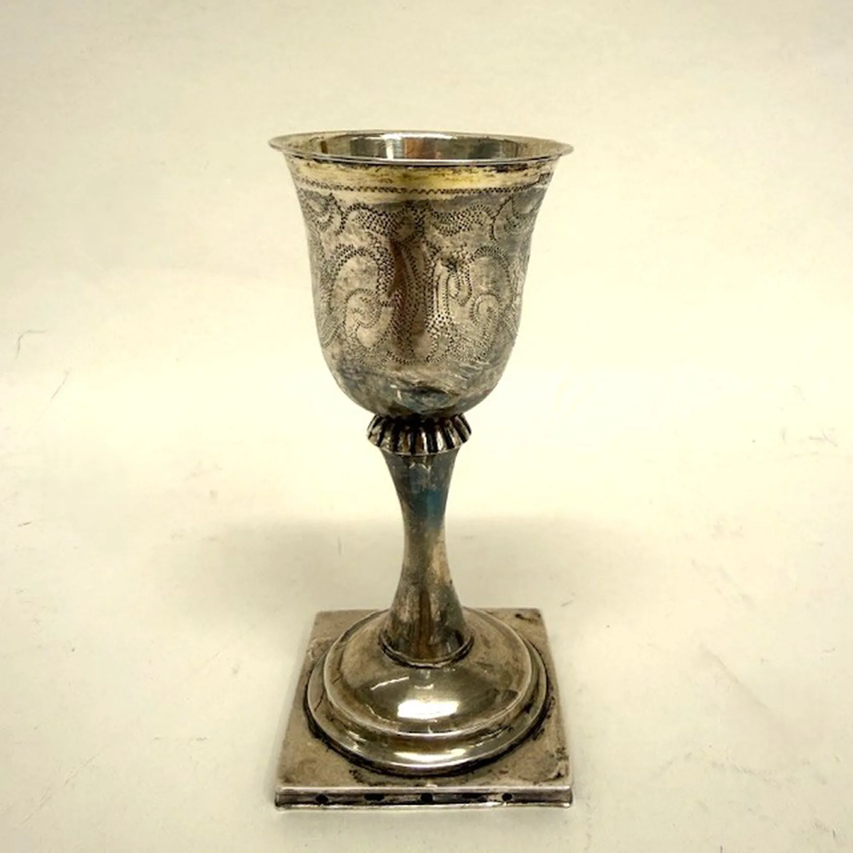 Supkalk med ciselerad dekor år 1836, höjd 12cm, monogram, förgylld insida, stämplad ILK, bucklor, silver 830/1000 Vikt: 45,2 g.