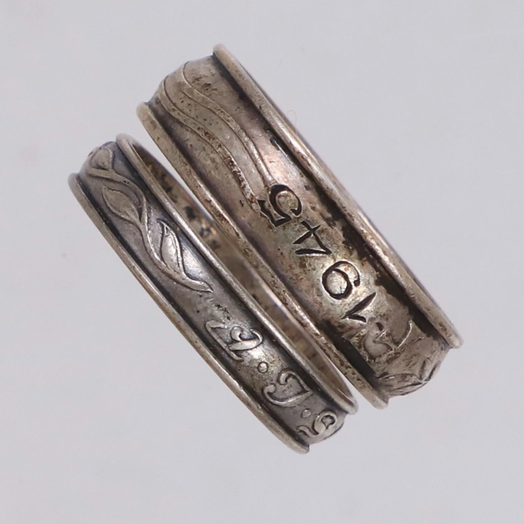 Diverse silver, två ringar, gravyr, 830/1000 silver Vikt: 6,9 g.