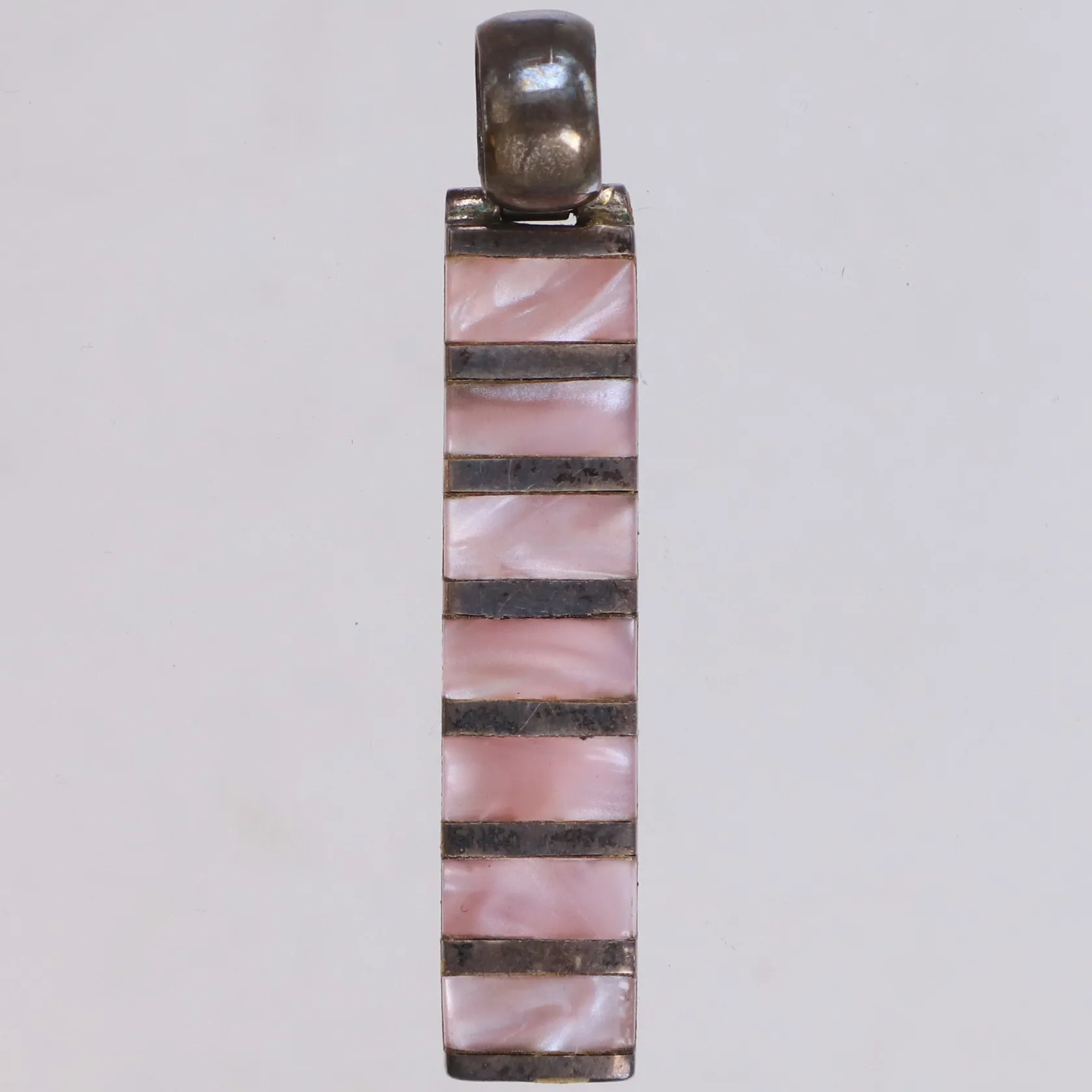 Hänge med rosa stenar längd 52mm, bredd 9,4mm, silver 925/1000 Vikt: 7,3 g.