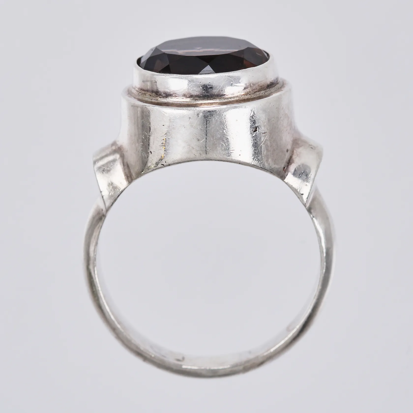 Ring med rökkvarts stl: 19½ bredd: ca 4-15 925/1000, silver Vikt: 9,9 g.