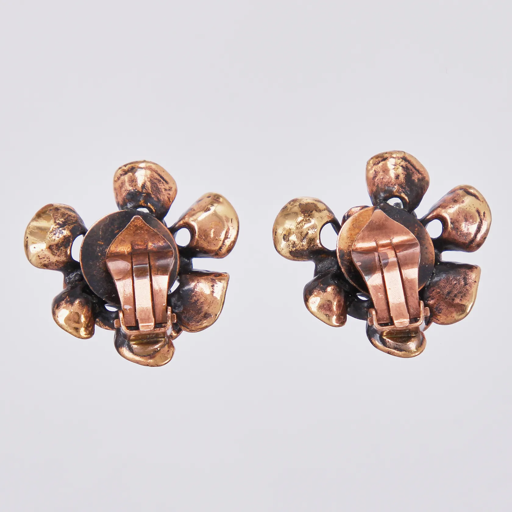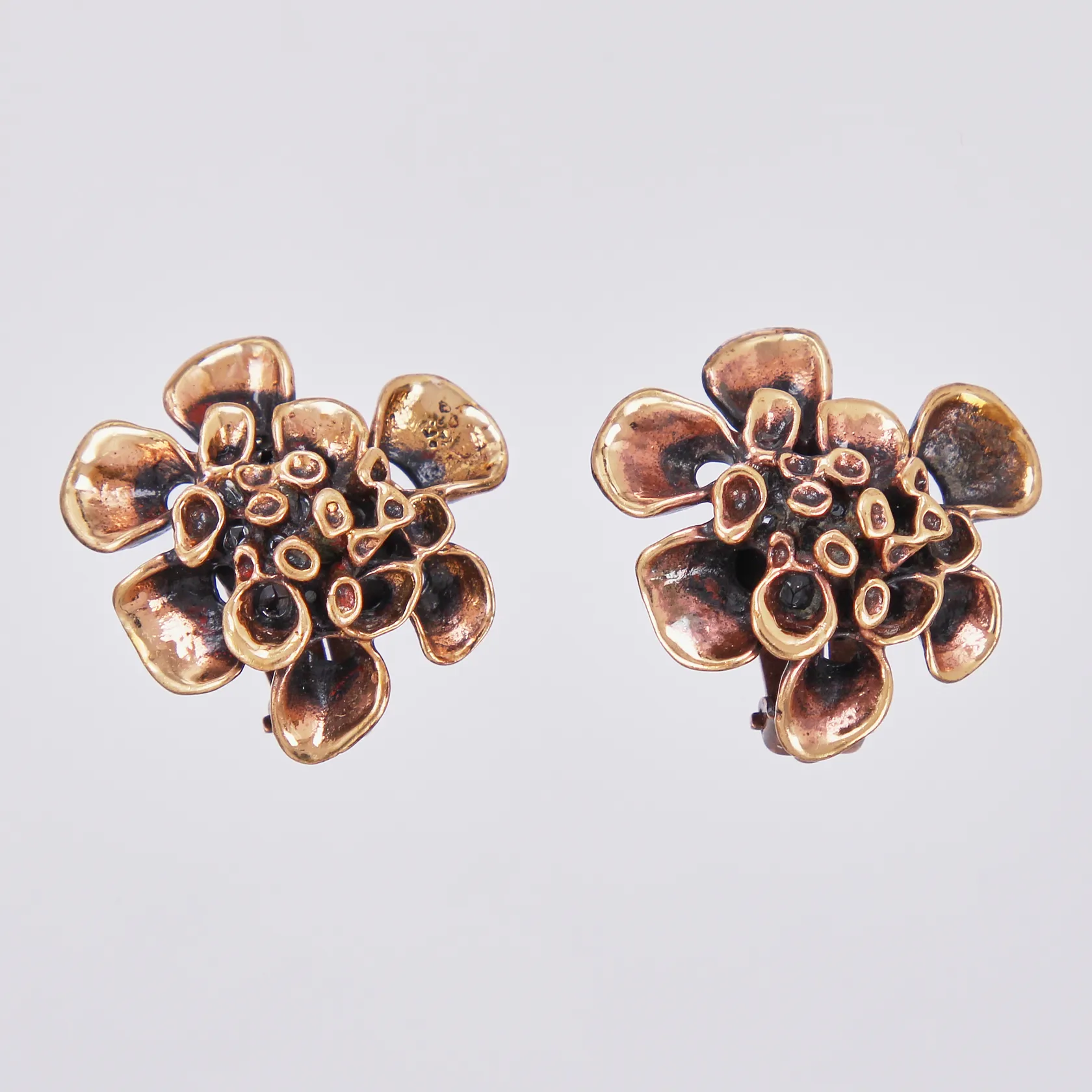 Ett par örhängen Design Hannu Ikonen Finland "lava" clips, längd: ca 2,5cm, bredd: ca 28mm, brons