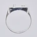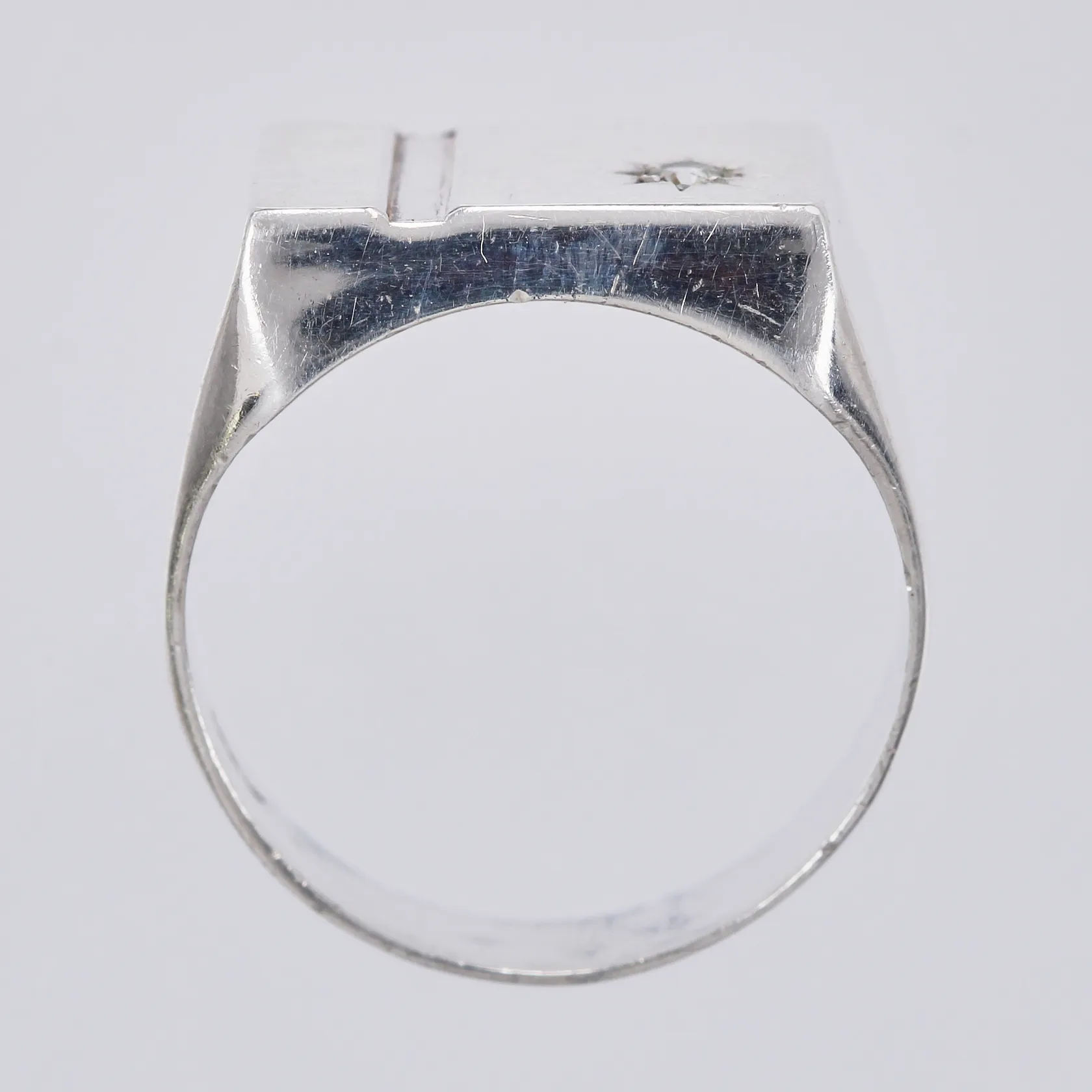Klackring med vit sten, stl: 17¾, bredd ca 5-11mm, 835/1000 silver Vikt: 4 g.