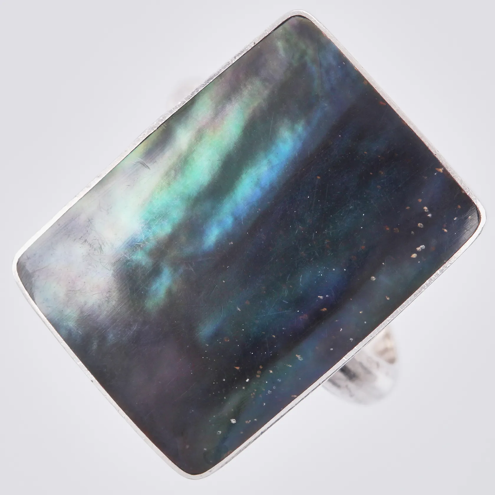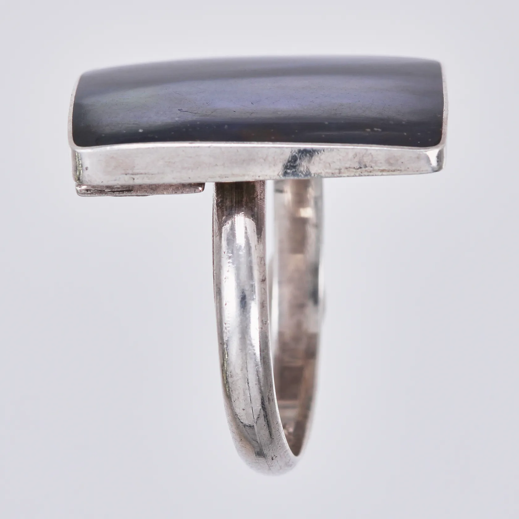 Ring med pärlemor stl: 19¼ bredd: ca 3-23mm 925/1000, silver Vikt: 6,4 g.