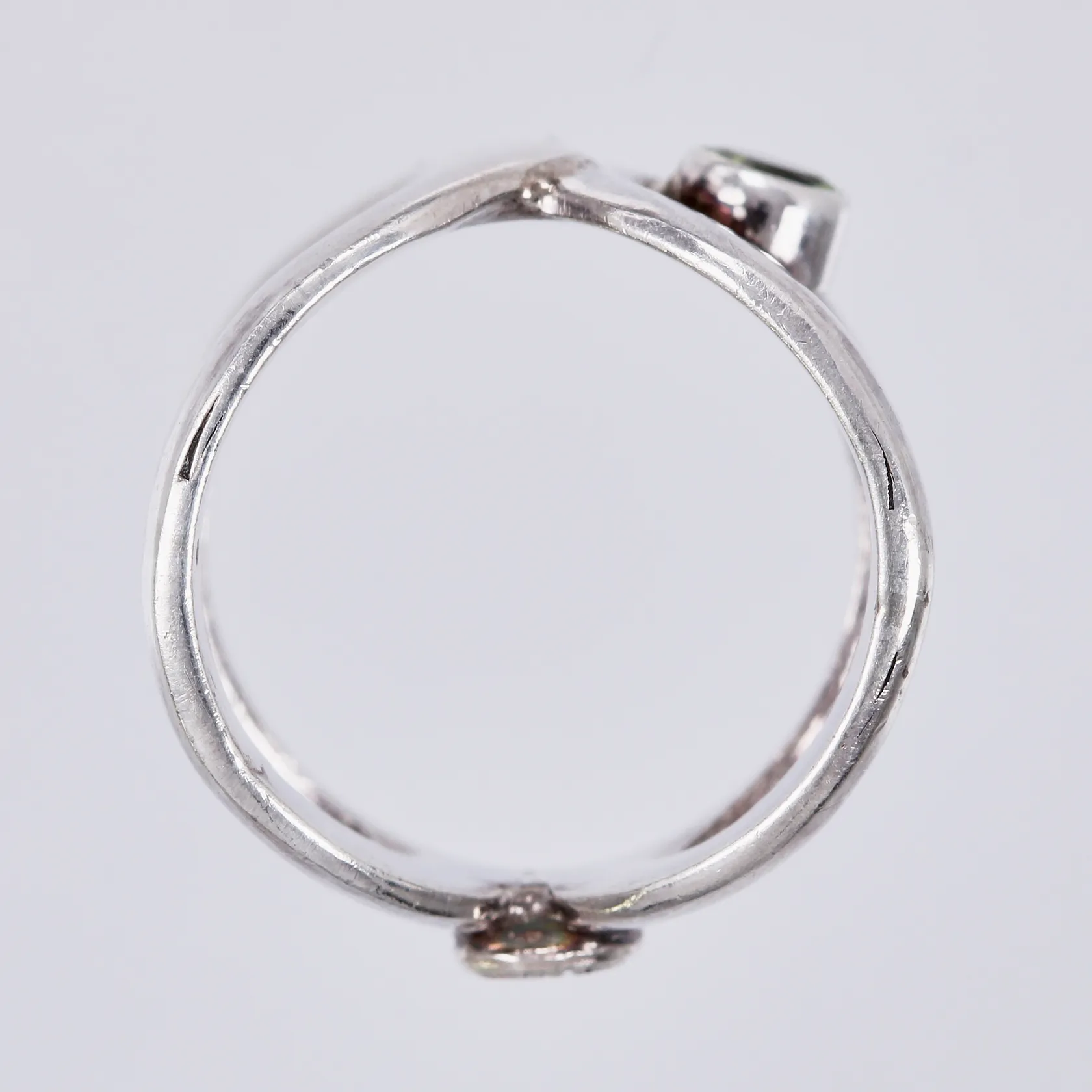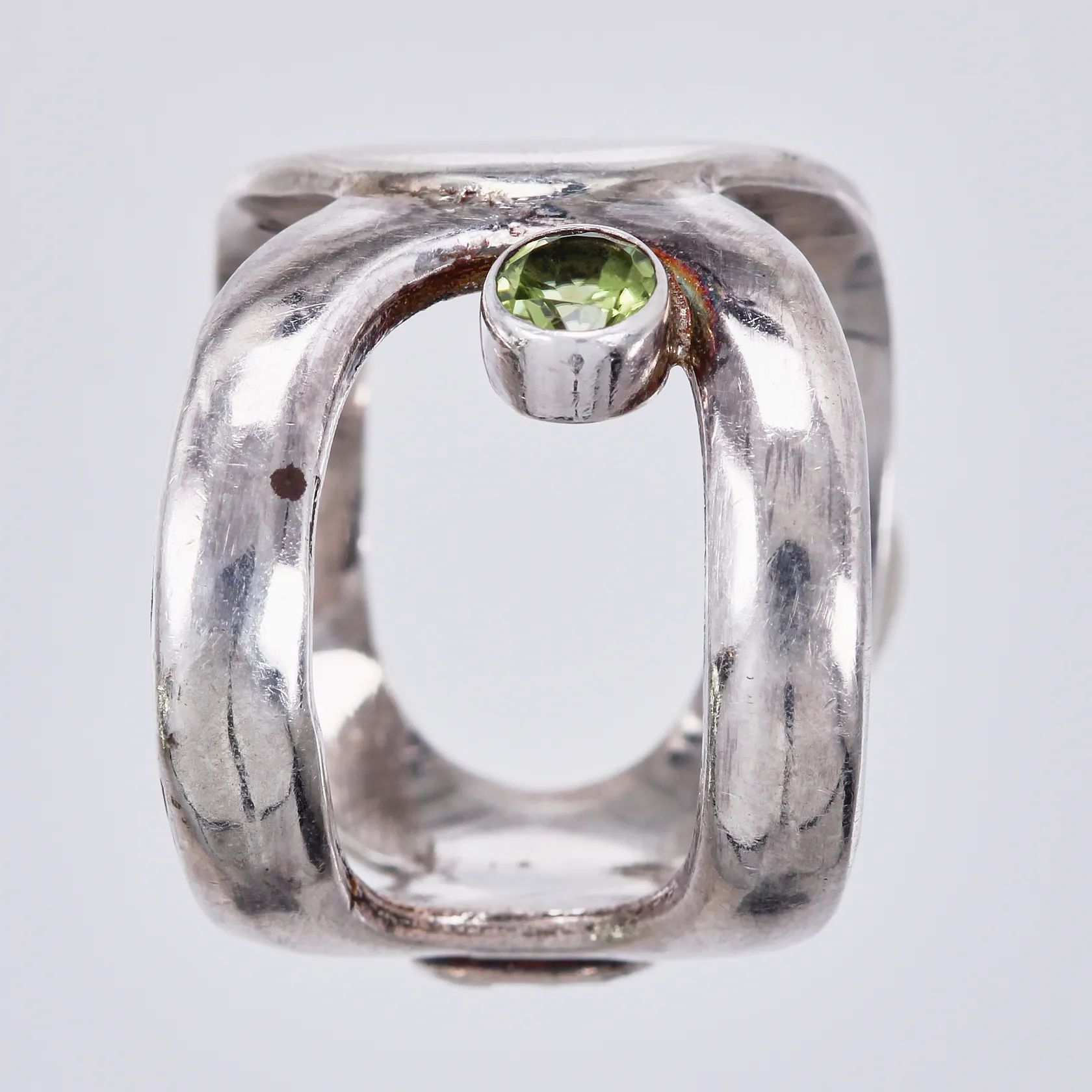 Ring med grön sten stl: 17 bredd: ca 10-17mm 925/1000, silver Vikt: 7,8 g.
