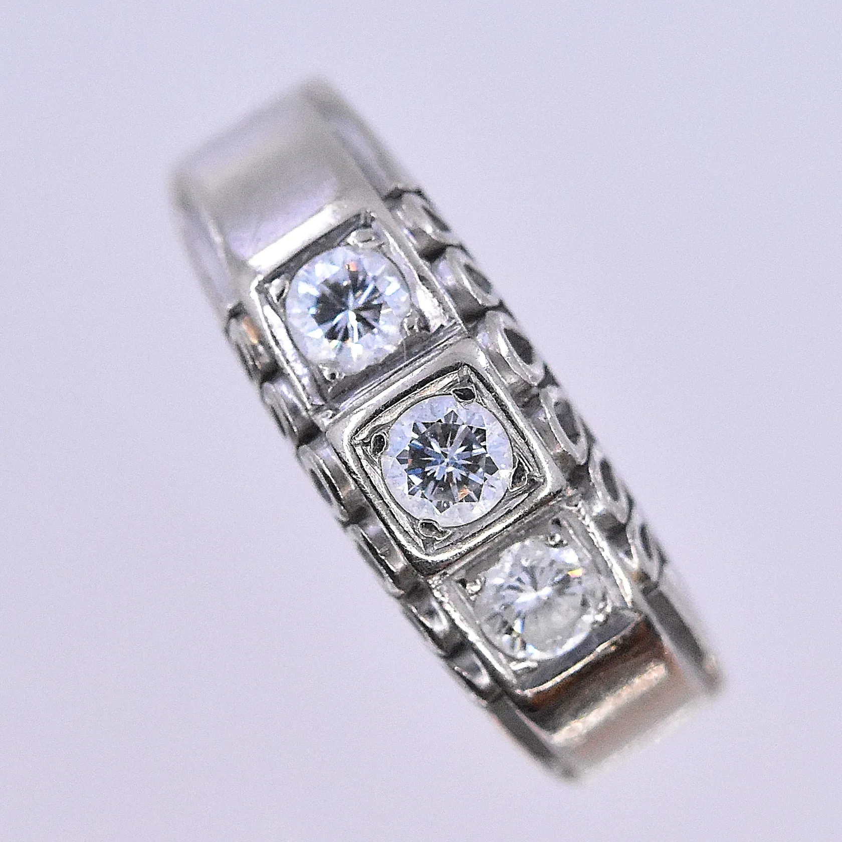 Ring med diamanter 3x0,12ct stl:17, bredd 3-6 mm, vitguld, 18K. Vikt: 5,1 g.