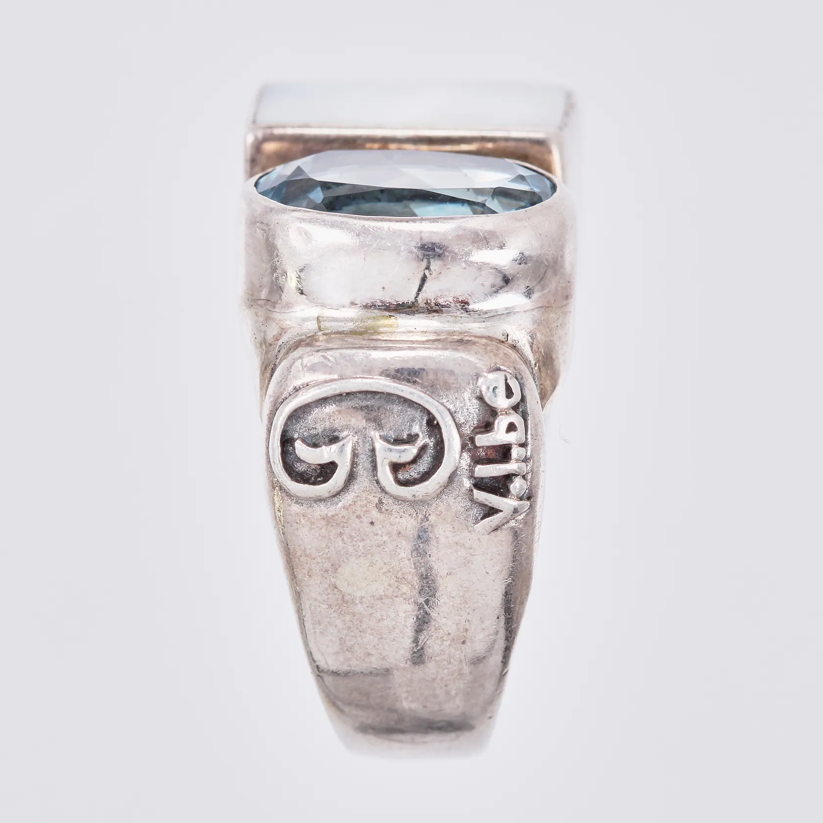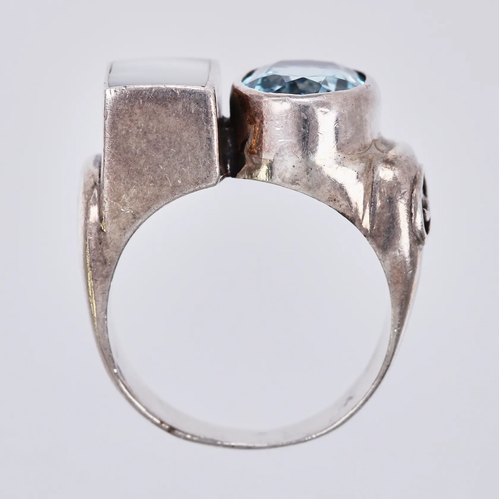 Ring med pärlemor och topas stl: 20 bredd: ca 5-15mm 925/1000, silver Vikt: 16,8 g.