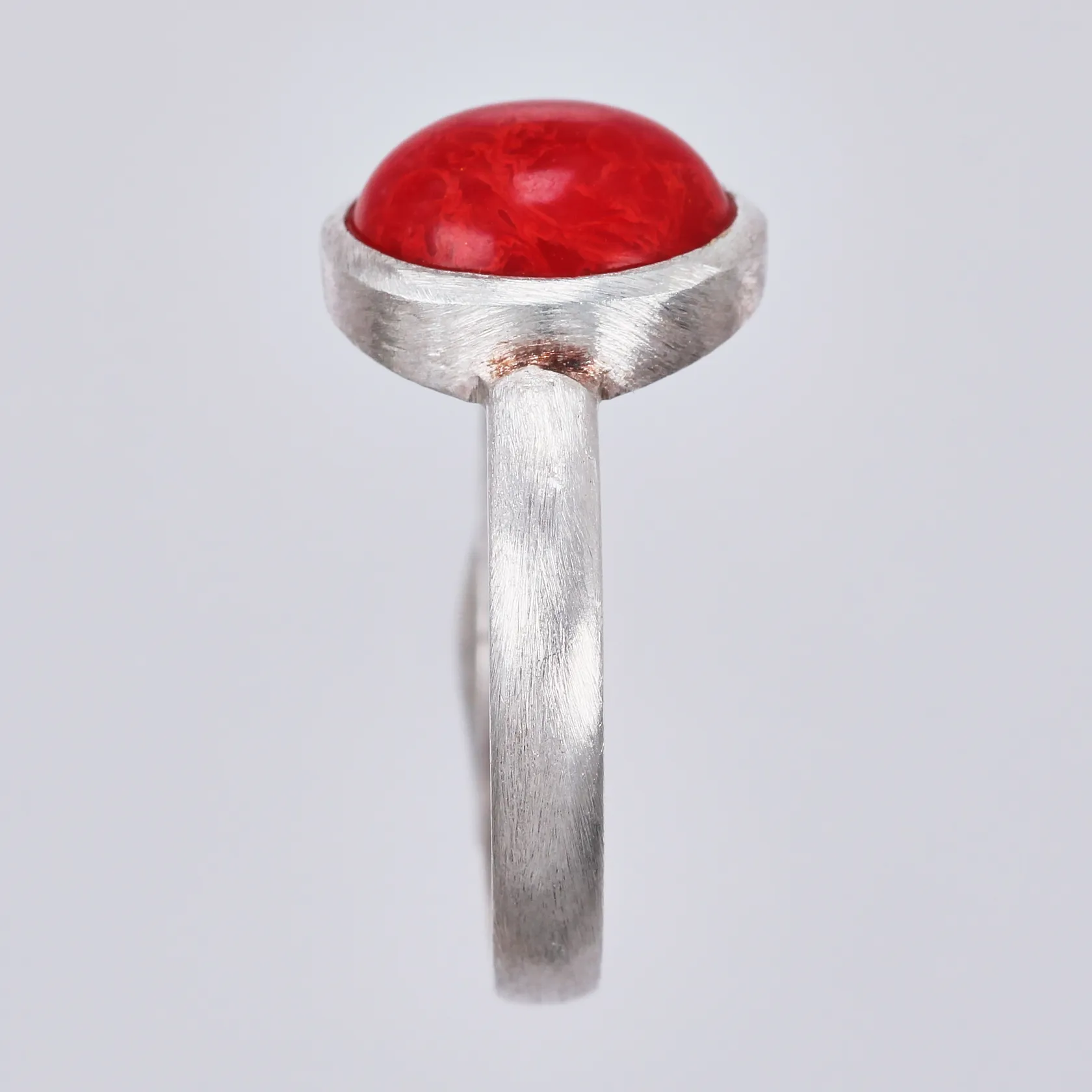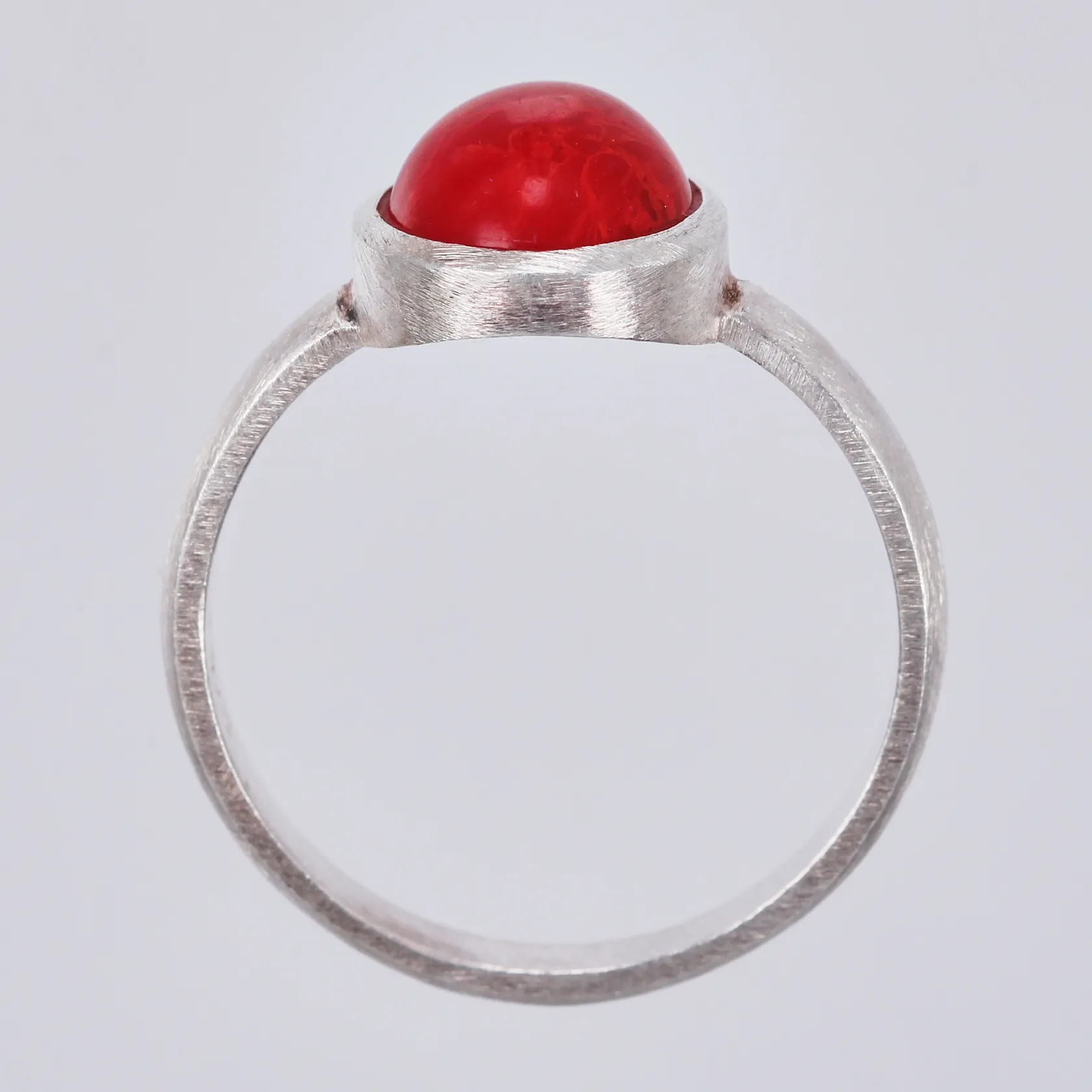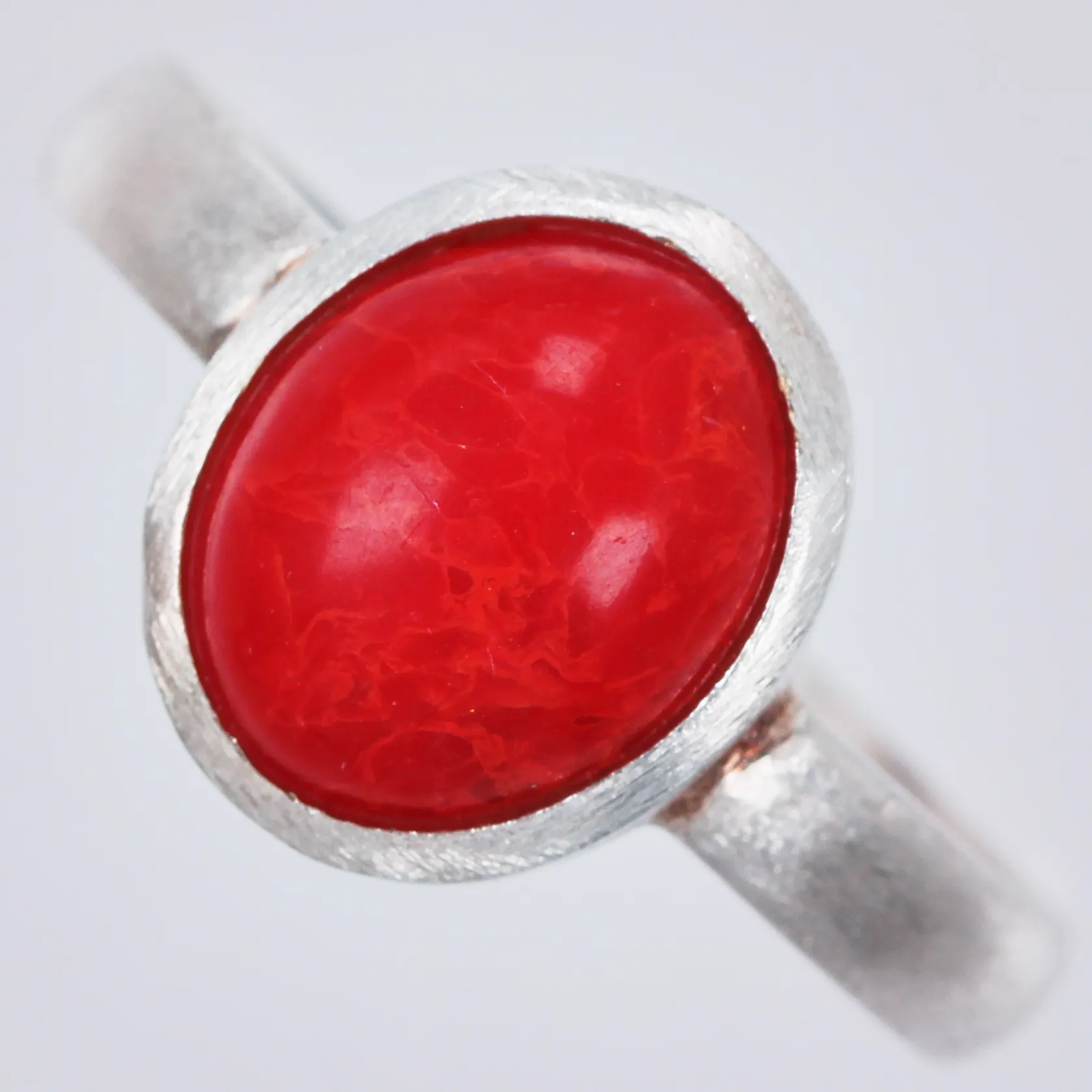 Ring med röd sten stl: 18 bredd: ca 2-12mm 925/1000, silver Vikt: 2,8 g.