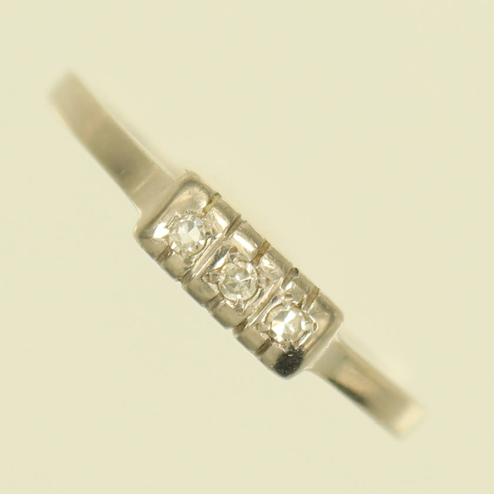 Ring vitguld med 3 vita stenar, stl 17½ bredd 1-3mm, graverad, 18K 1,8g totalt. Vikt: 1,8 g.