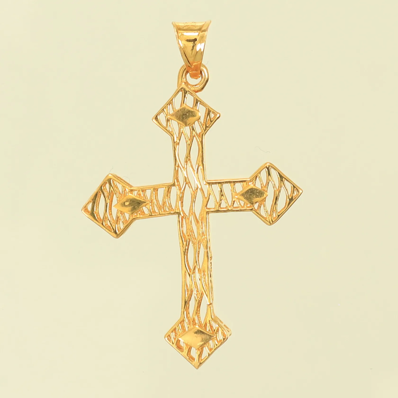 Hänge "kors" genombruten dekor, längd ca 33mm, bredd 30-21mm, 21K, 1,3g Vikt: 1,3 g.