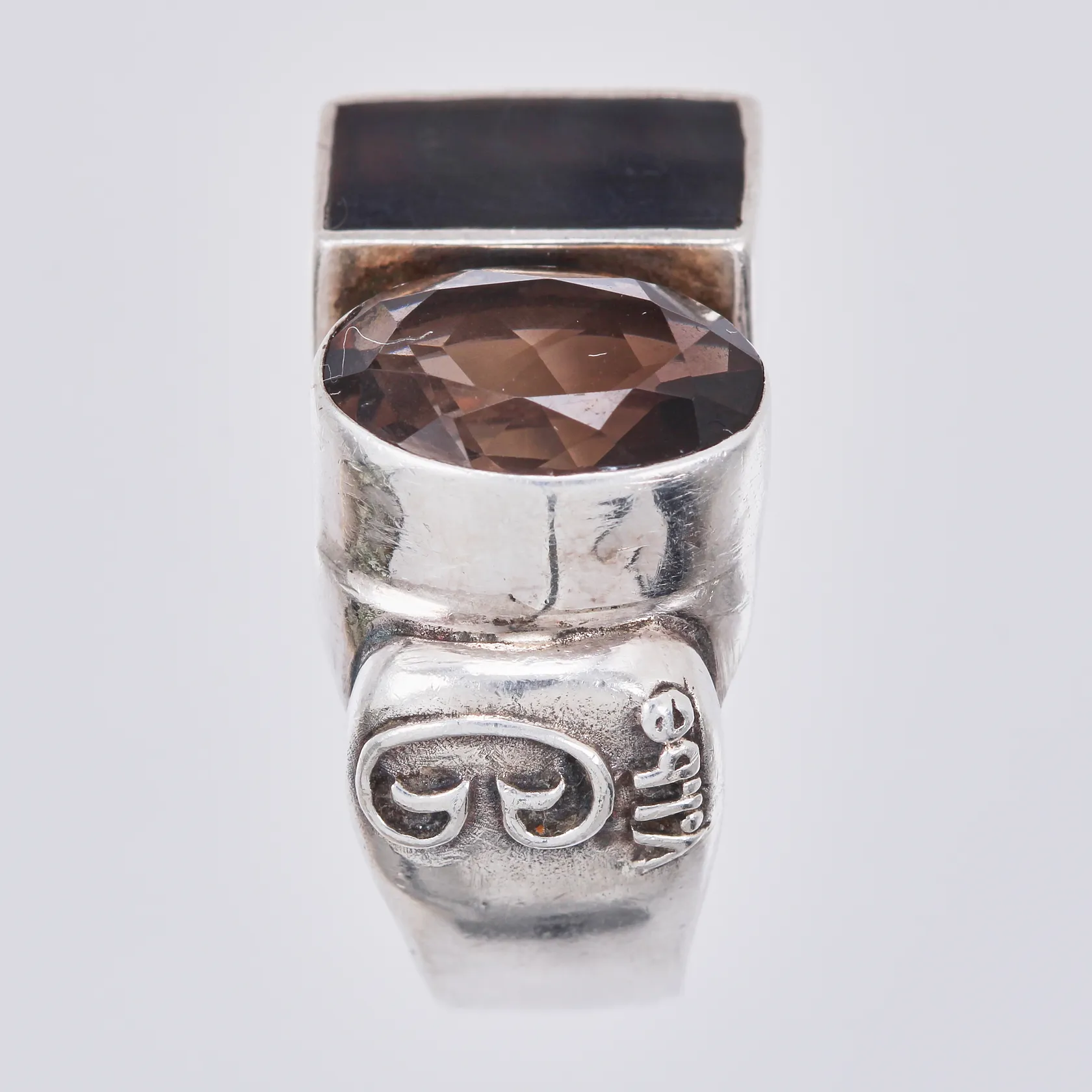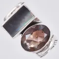 Ring med pärlemor och rökkvarts stl: 18¾ bredd: ca 5-15 925/1000, silver Vikt: 16,5 g.