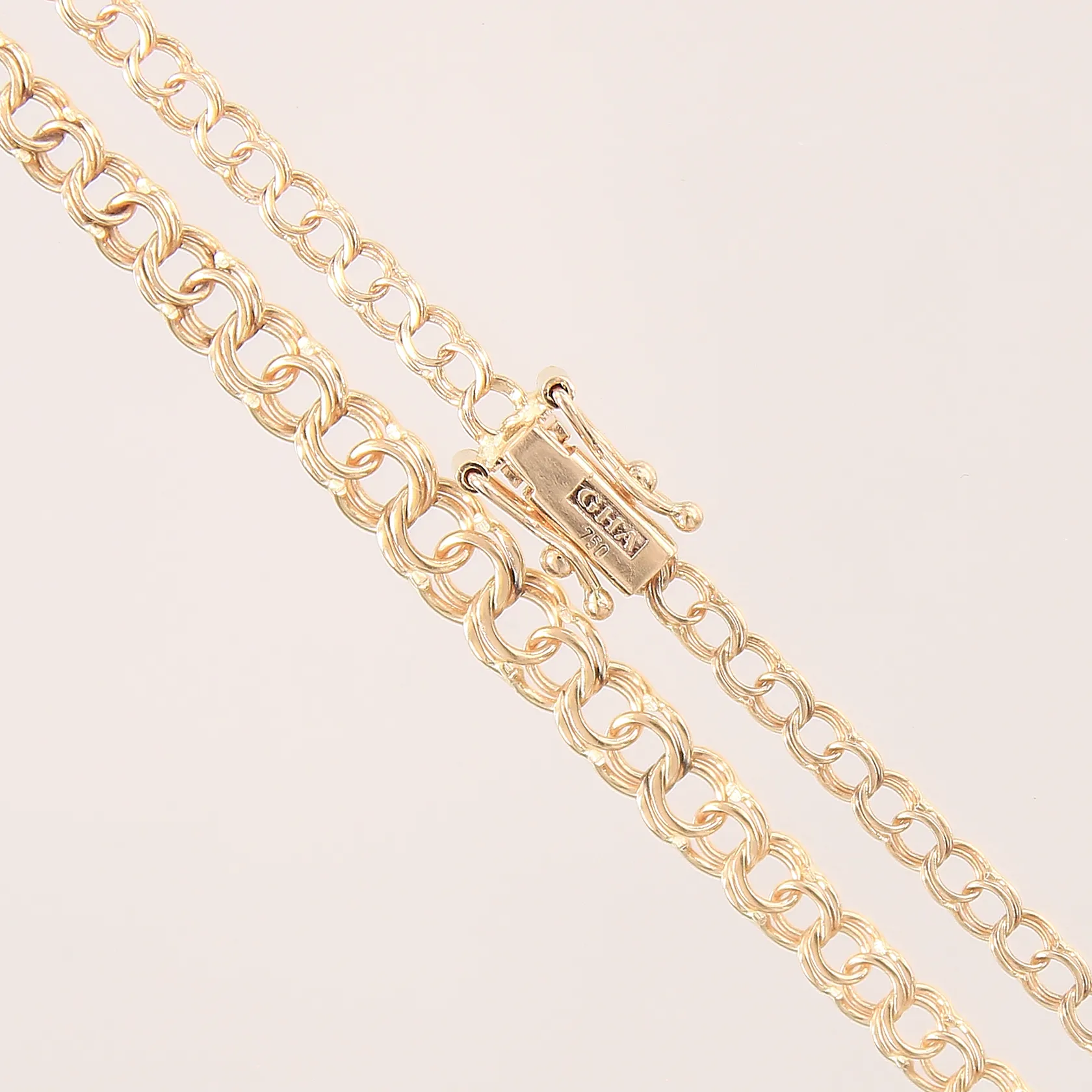 Collier doserad Bismarck, längd 46,5cm, bredd 2,8-4,7mm, GHA, 18K Vikt: 6,8 g.