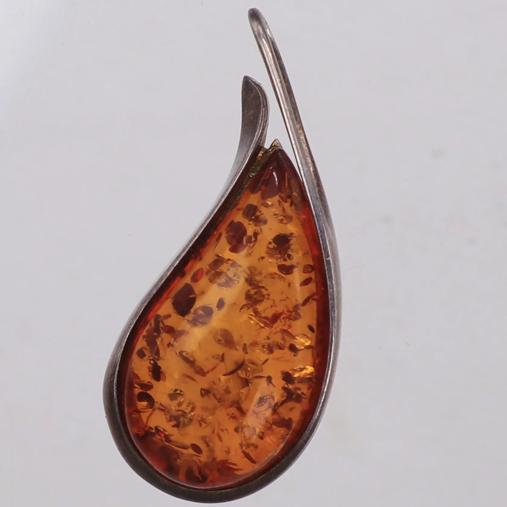 Hänge med troligen bärnsten, längd 43,5mm, bredd 19,4mm, silver Vikt: 6,7 g.