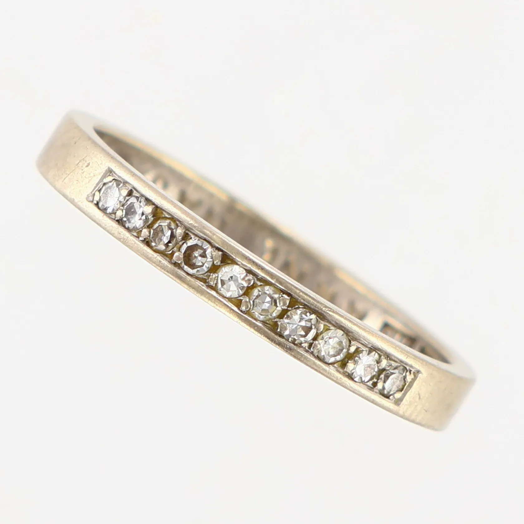 Ring med diamanter stl 16¼, bredd: 2,5mm, vitguld 18K Vikt: 2,5 g.