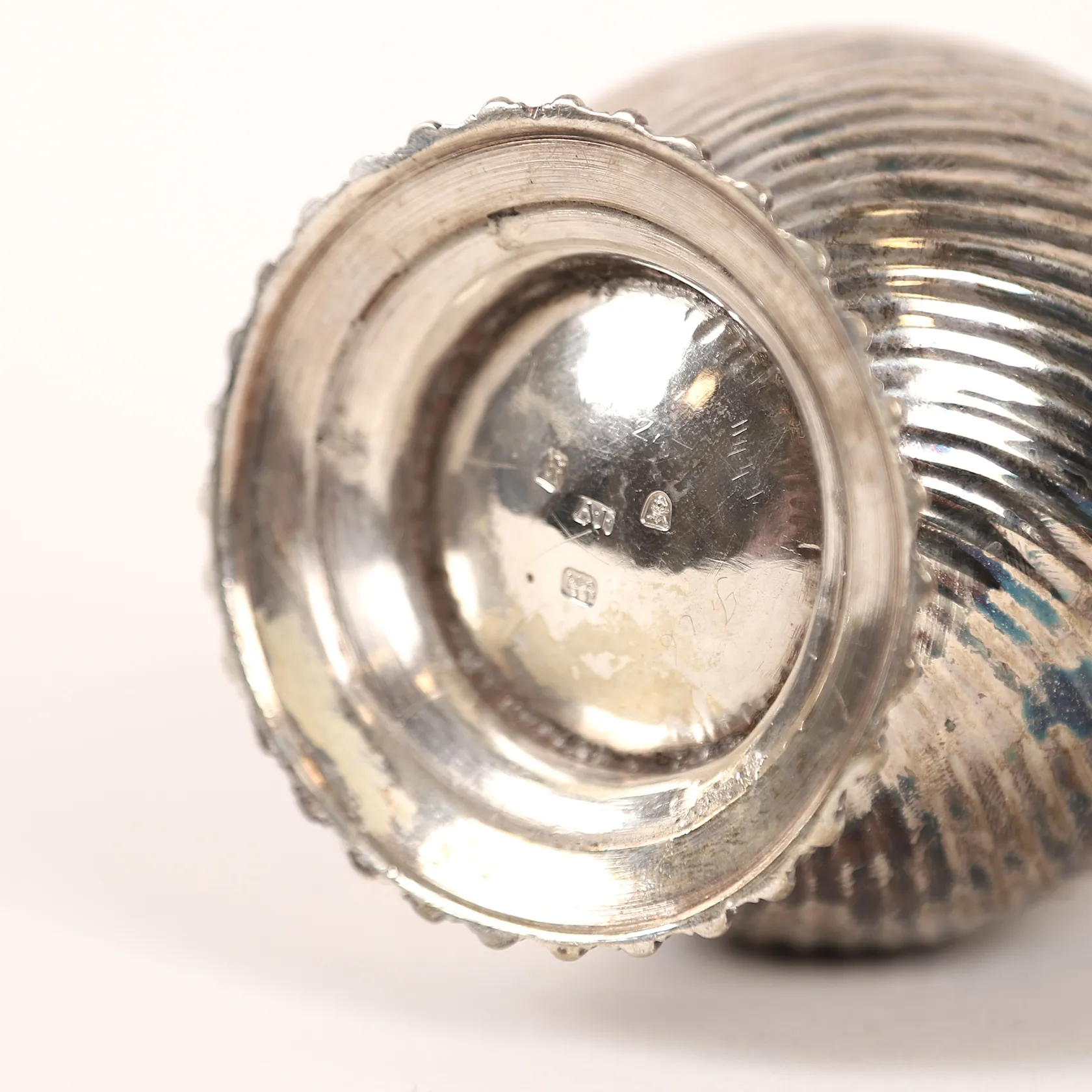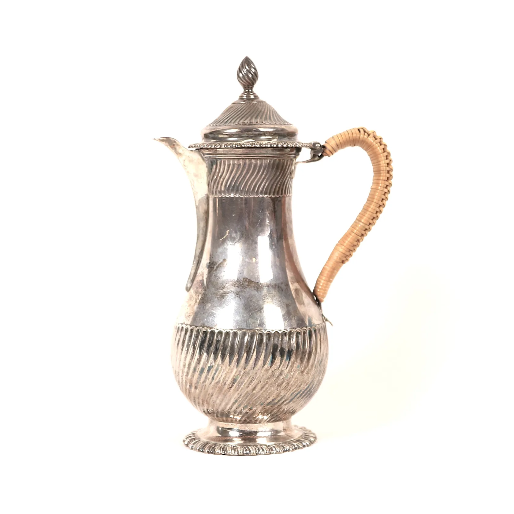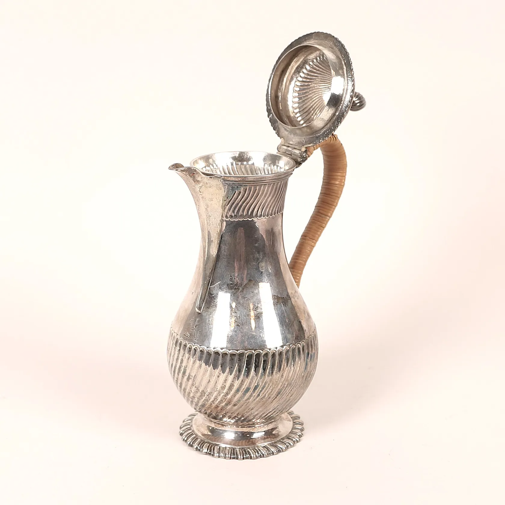 Chokladkanna med crest, London, England, 1772, balusterform med vriden dekor, lagat handtag, åldersbetingat slitage, silver, bruttovikt 558,2g