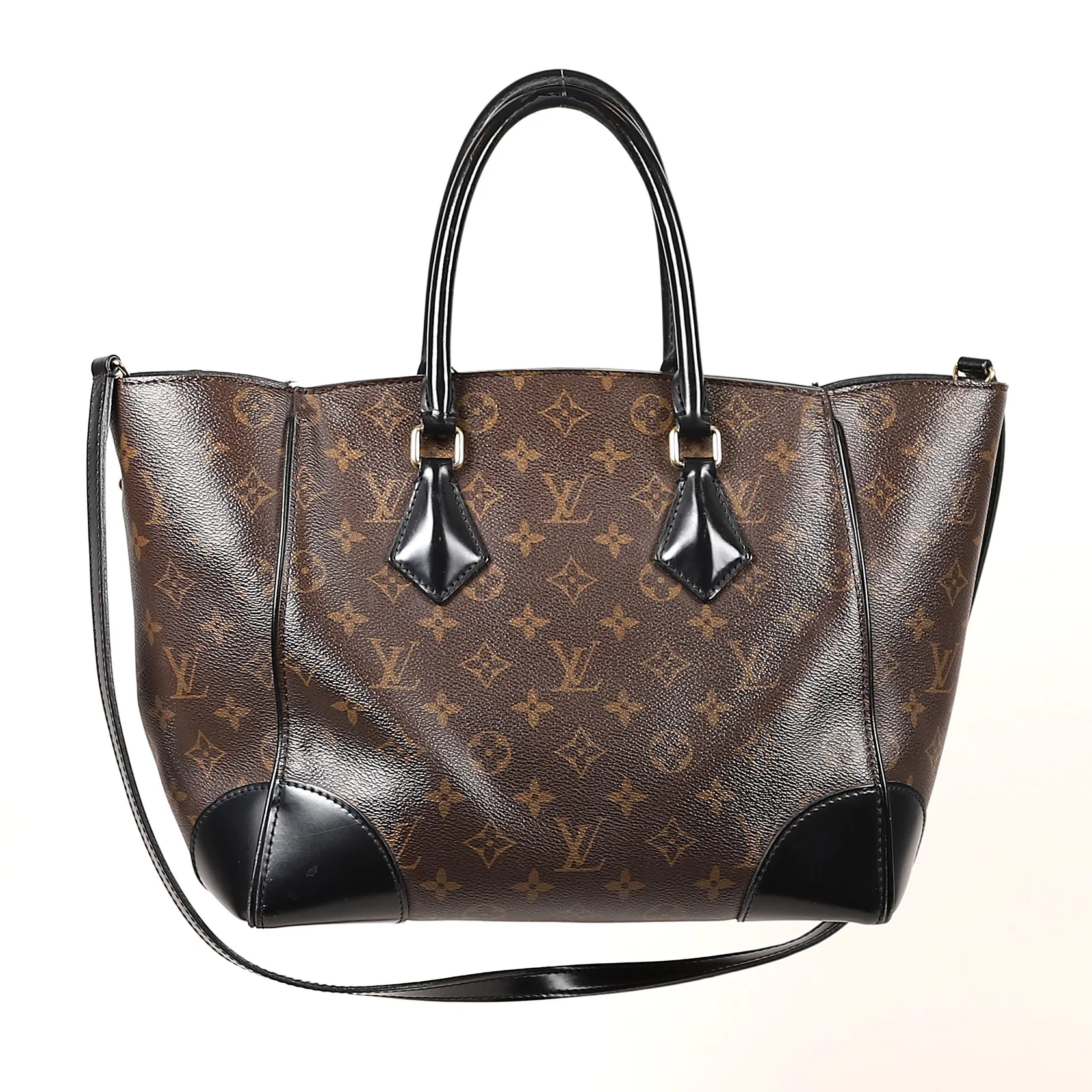 Väska Louis Vuitton, "Phenix", monogramcanvas med svarta skinndetaljer, invändigt fodrad, axelrem, längd 24x38x16cm, bruksslitage, märken och repor, invändigt fläckar. Skickas med postpaket.