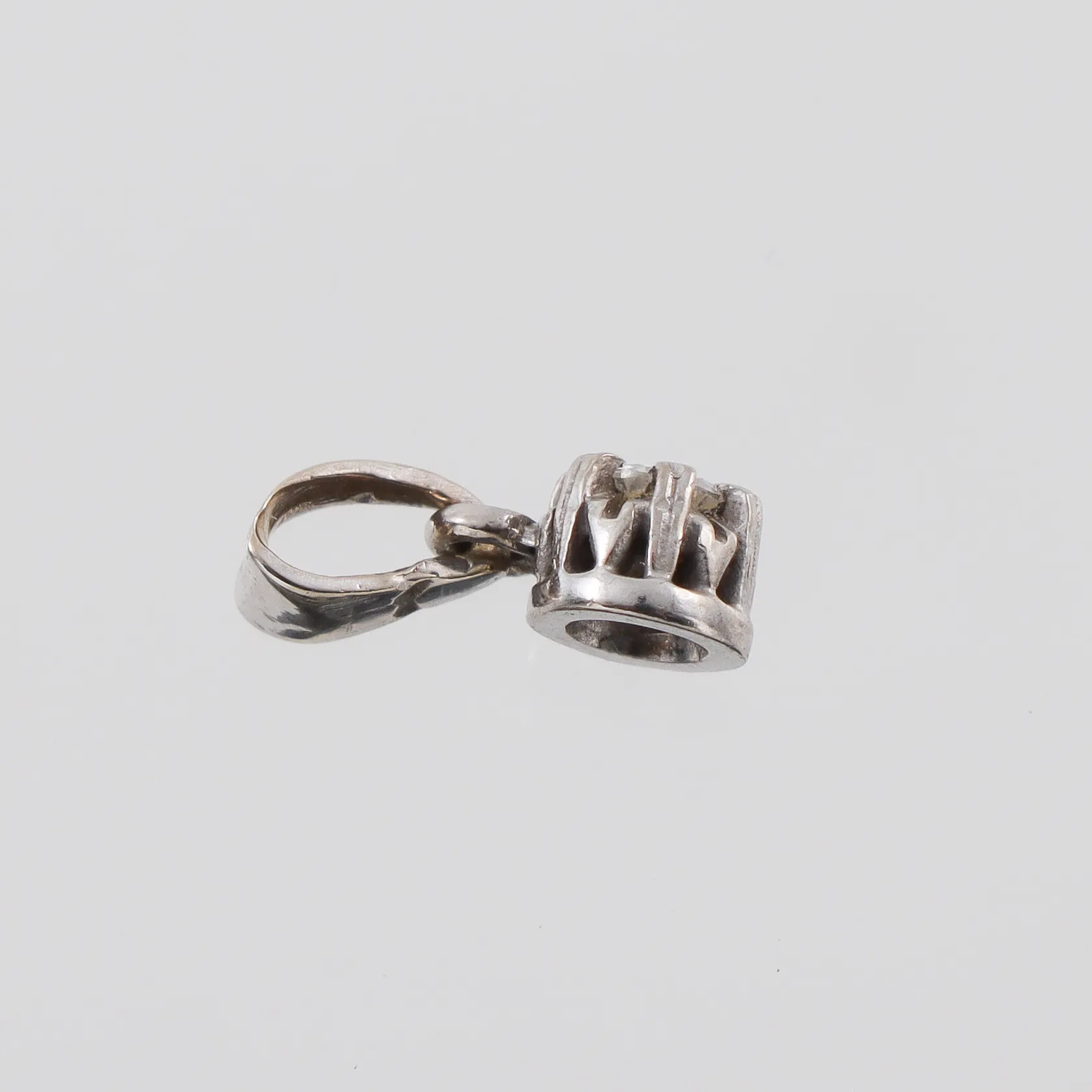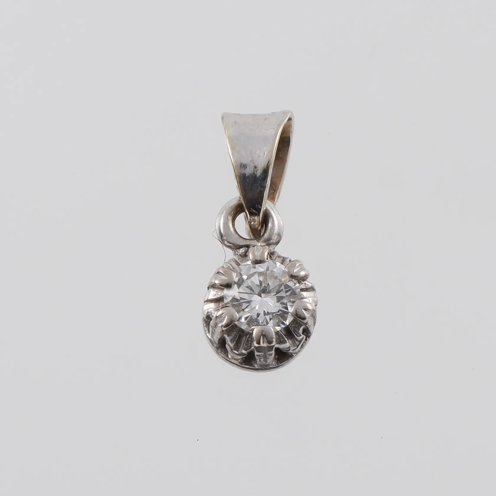 Diamanthänge 18k vitguld med solitär diamant på ca 0.10 ct, höjd med ögla ca 10 mm. Vikt: 0,6 g.