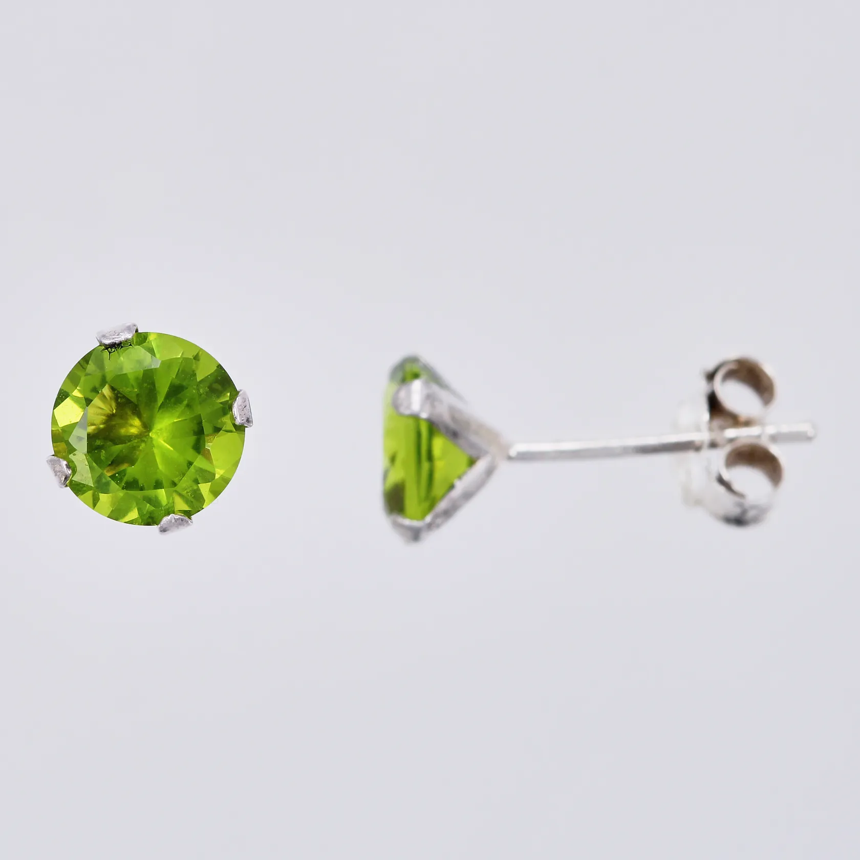 Ett par örhängen med gröna stenar Ø ca 7mm 925/1000 silver Vikt: 0,9 g.