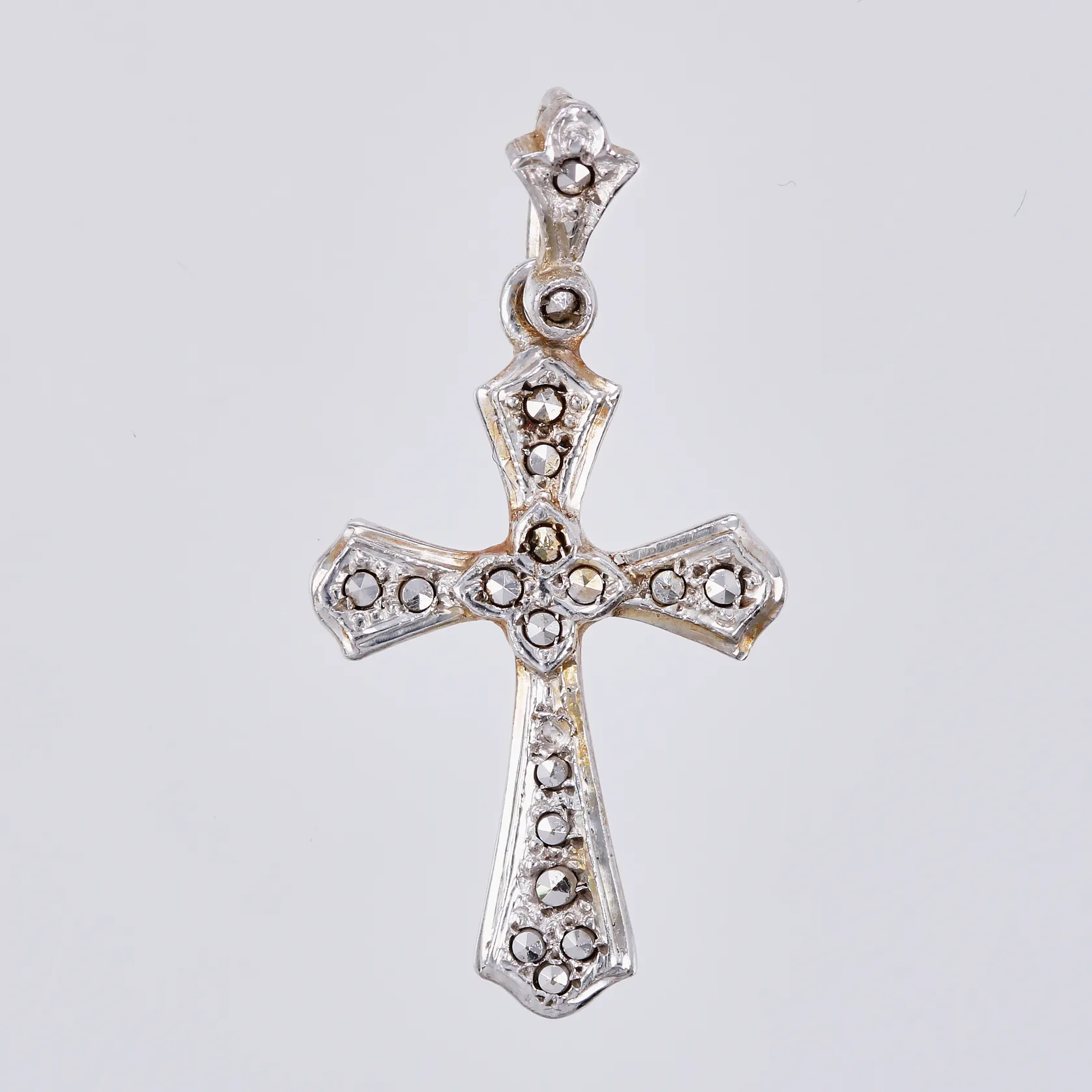 Hänge kors med markasiter längd: ca 3cm bredd: ca 5-16mm 830/1000, silver Vikt: 2,6 g.