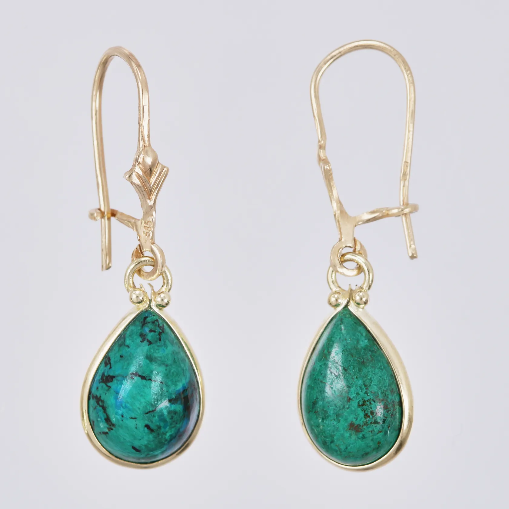 Ett par örhängen med stenar, längd ca 31mm, bredd ca 1-9mm, 14K Vikt: 2,7 g.