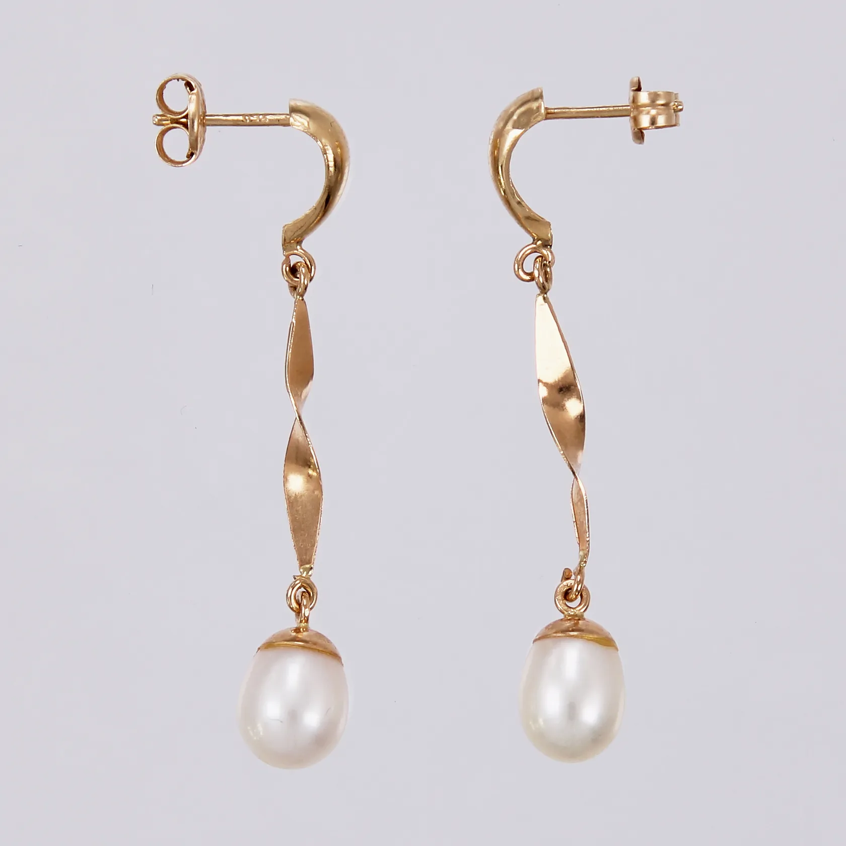 Ett par örhängen med odlade pärlor 7x6mm, längd ca 35mm, 18K Vikt: 1,8 g.