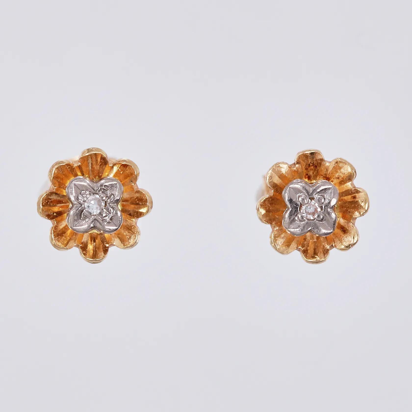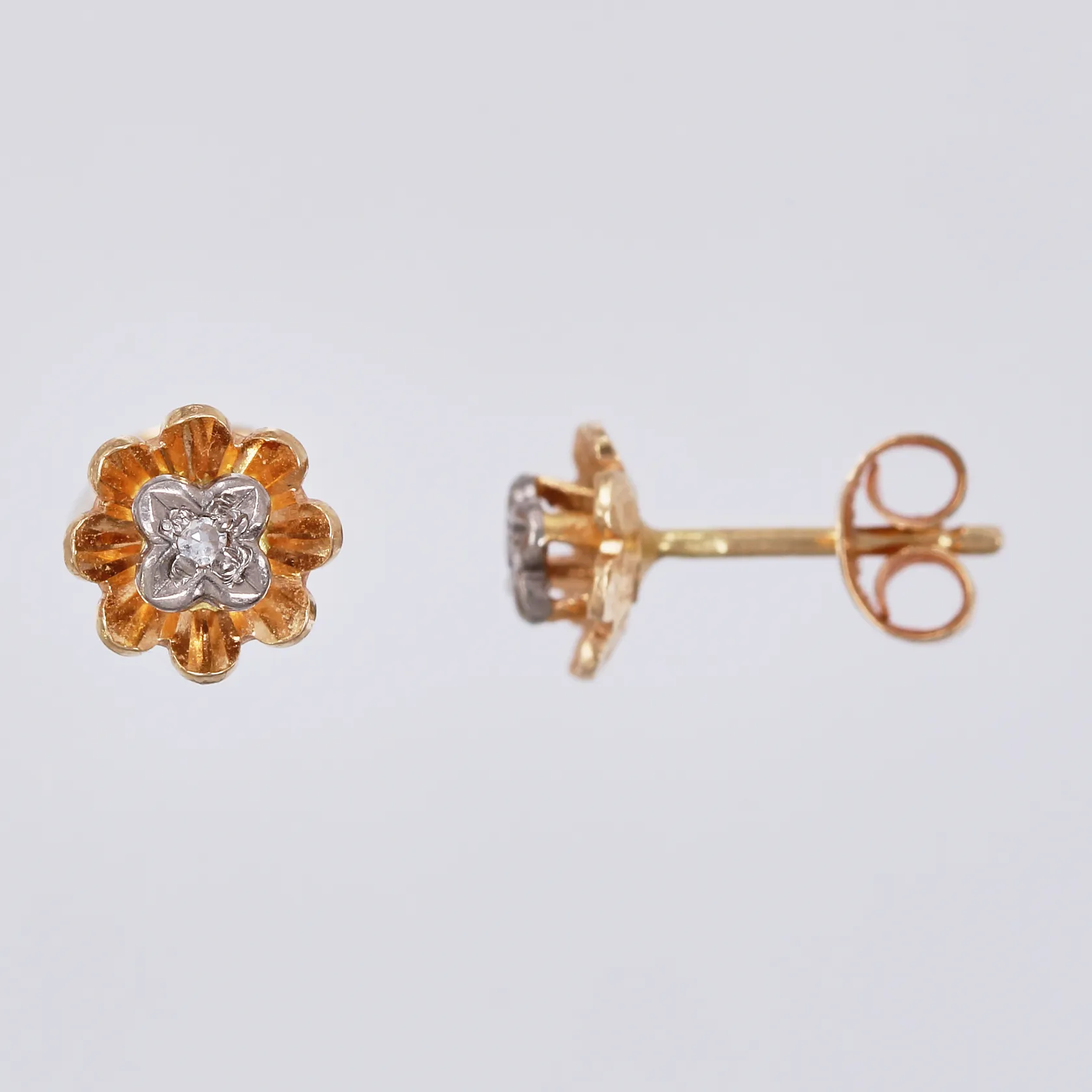 Ett par örhängen vitguld/gult guld med diamanter ca 2x0,005ct, Ø ca 7mm, 18K Vikt: 1,1 g.