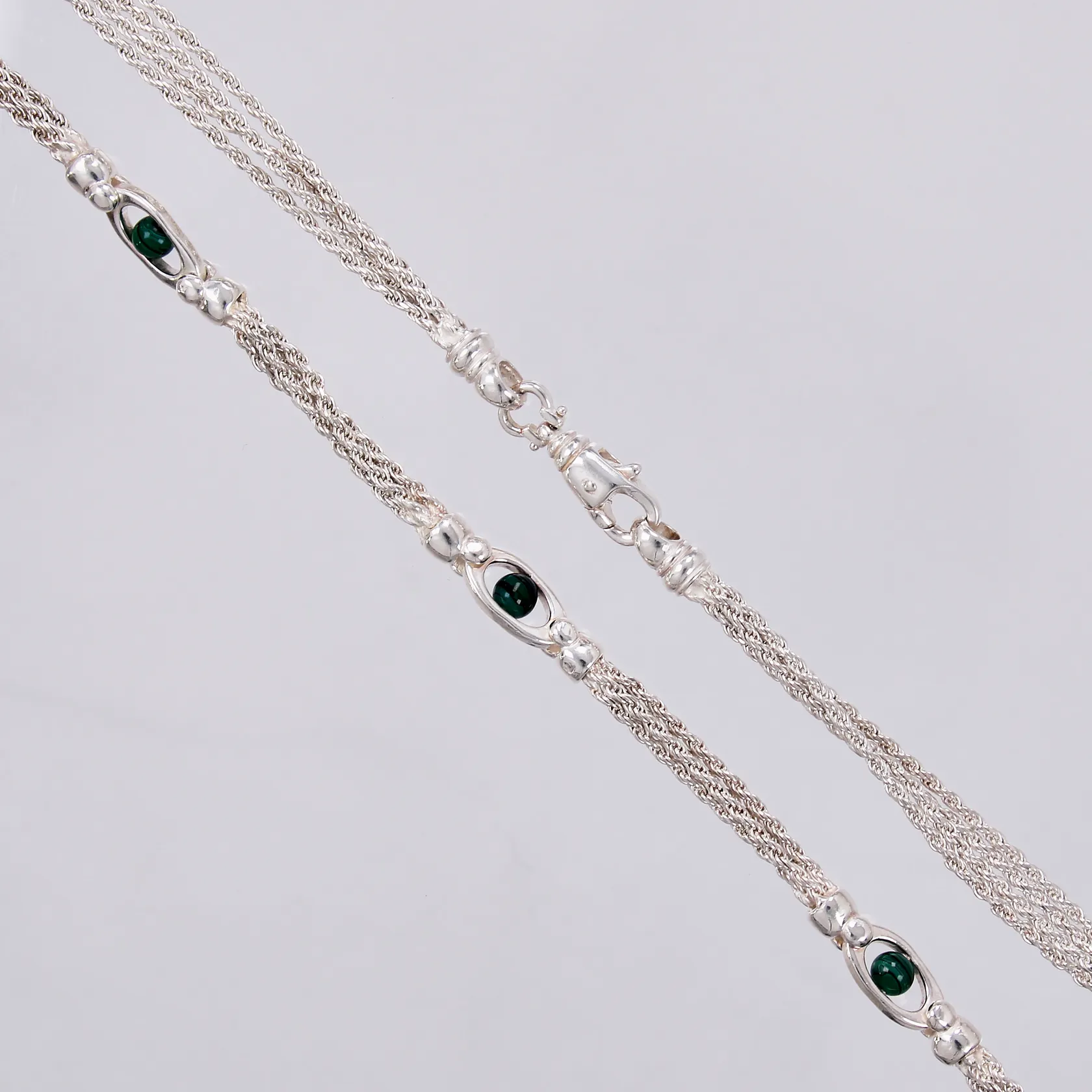 Collier med gröna stenar längd: ca 70cm bredd: ca 8mm 925/1000, silver Vikt: 46,3 g.