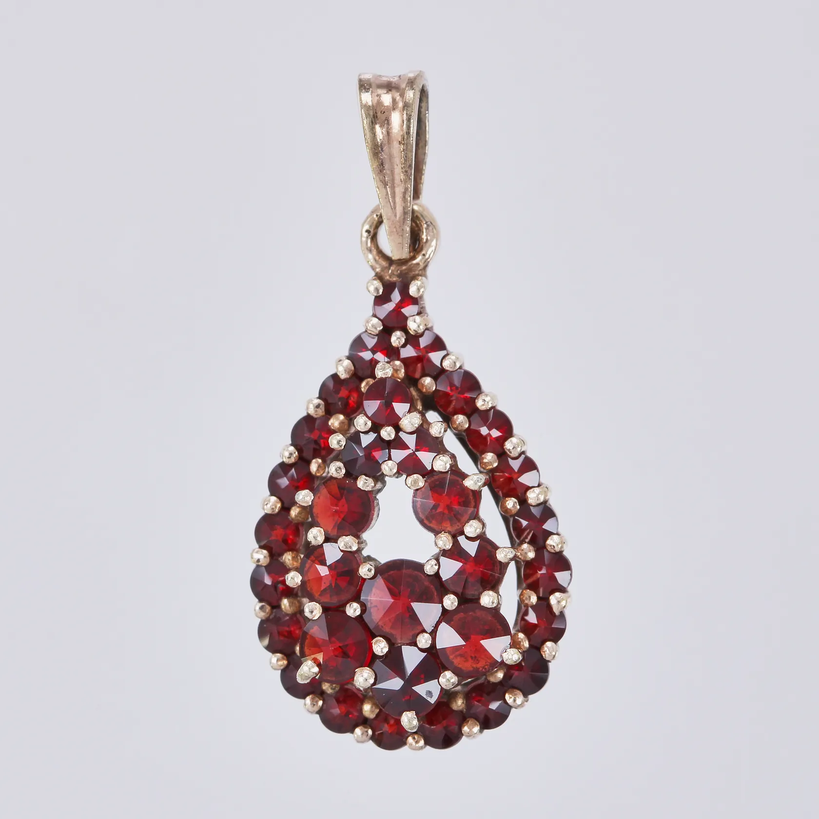 Hänge med granater 28mm, bredd ca 2-12mm 830/1000 silver Vikt: 2,4 g.