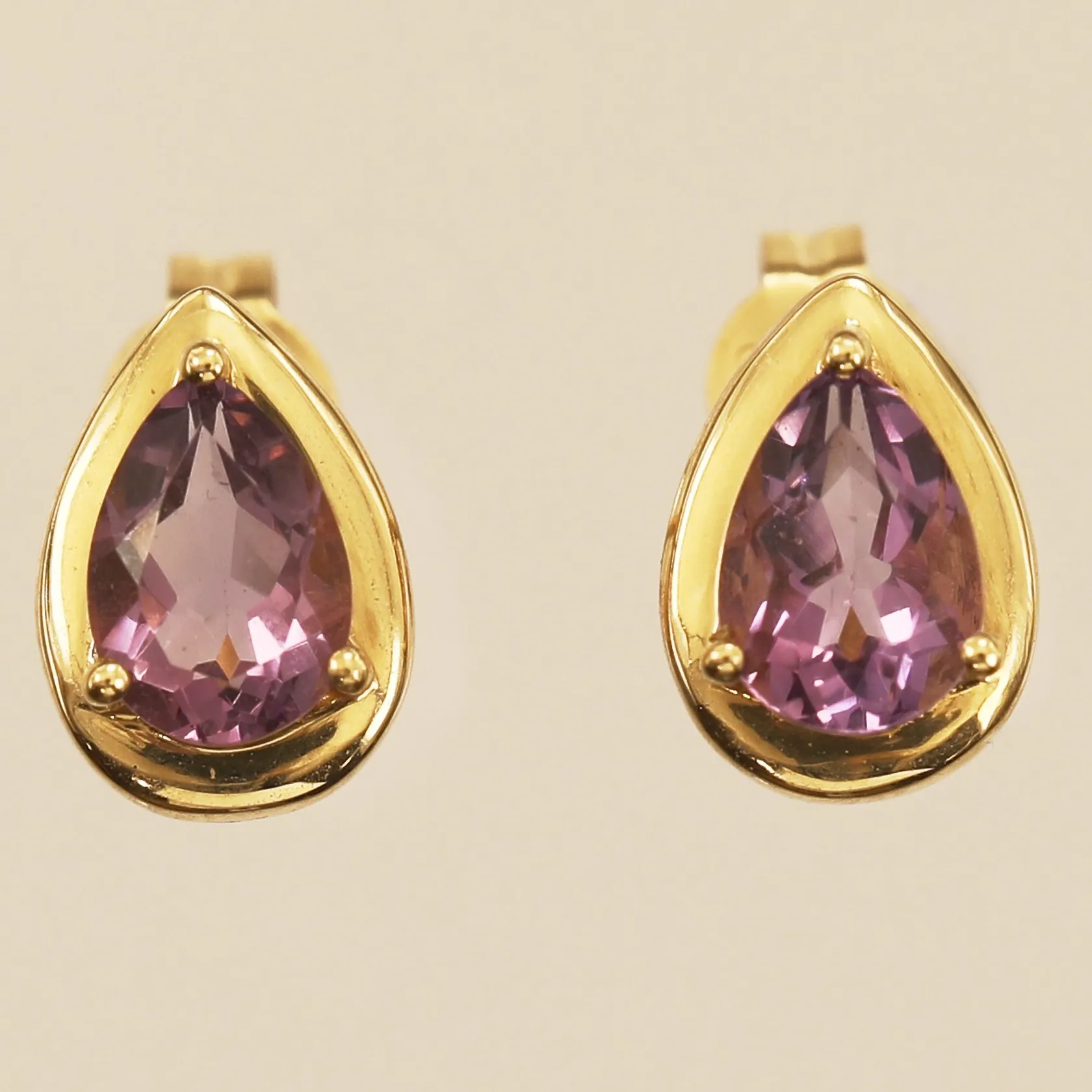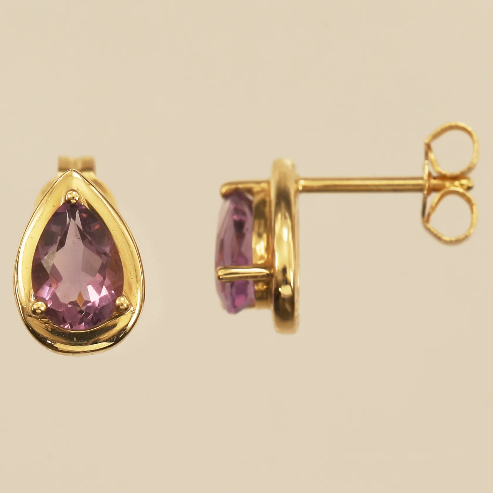 Ett par örhängen med ametister, längd 10mm, bredd 7mm, GHA, 18K Vikt: 2,5 g.