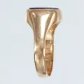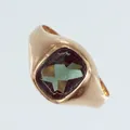 Klackring stl 19½, bredd 3,7-13,4mm, grön sten, 18K Vikt: 4,6 g.