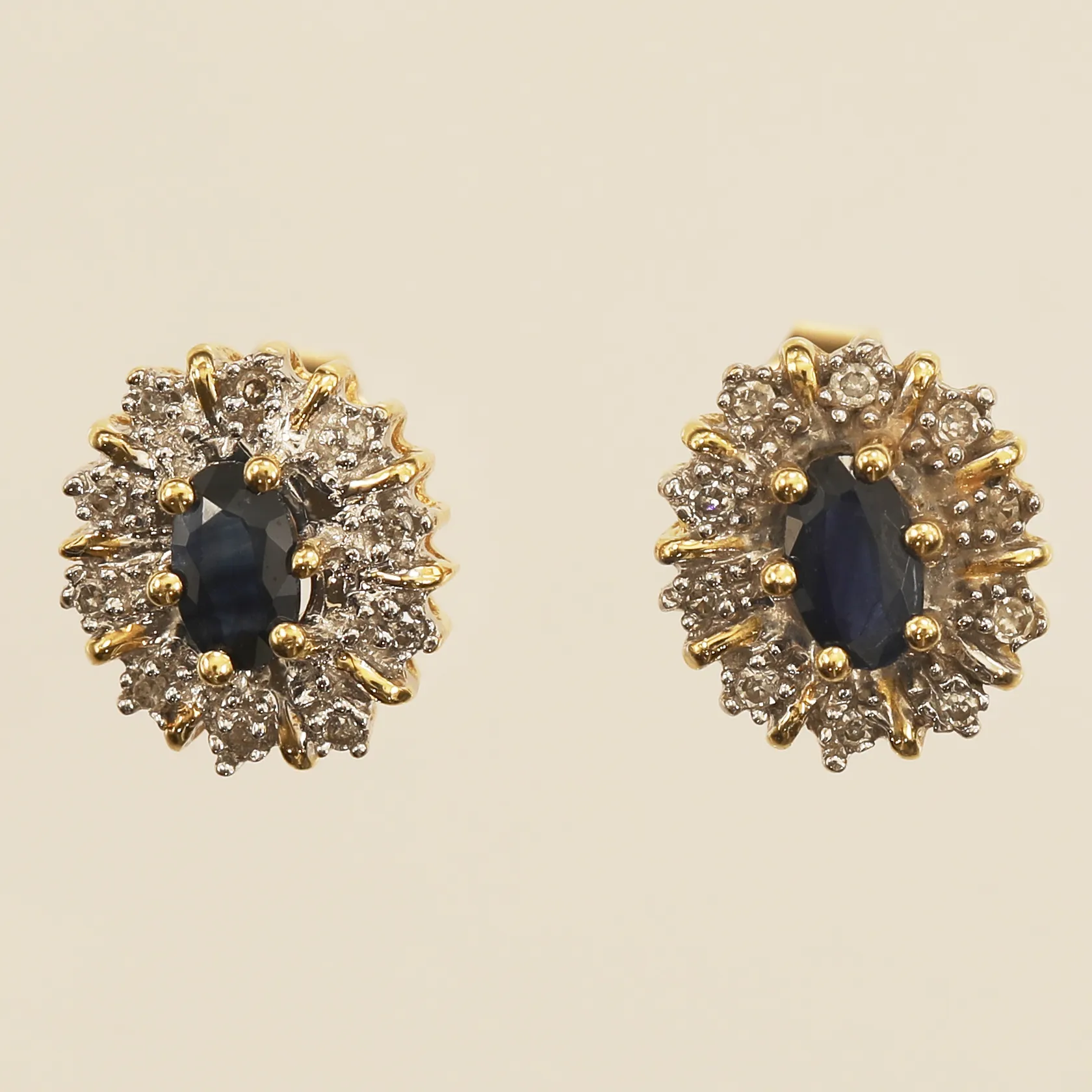 Ett par örhängen diamanter 20x ca 0,001ct, troligen syntetiska safirer, längd 10,5mm, bredd 9,5mm, GHA, 18K Vikt: 3,7 g.