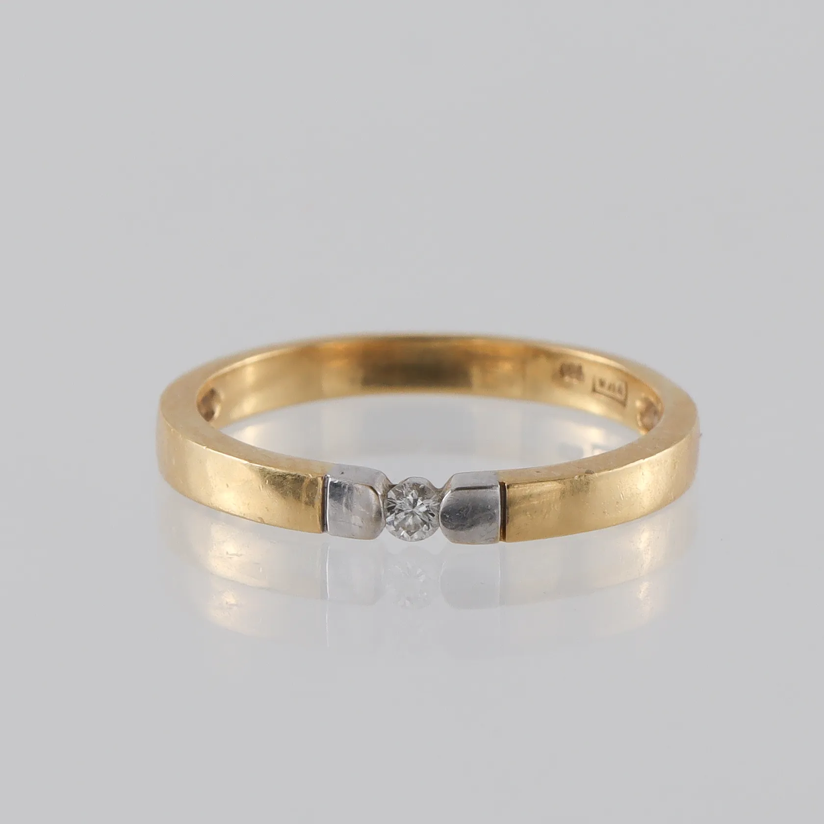 Diamantring 18k med solitär diamant ca 0,05ct, storlek 18 mm,bredd 2.5 mm, GHA. Vikt: 2,9 g.