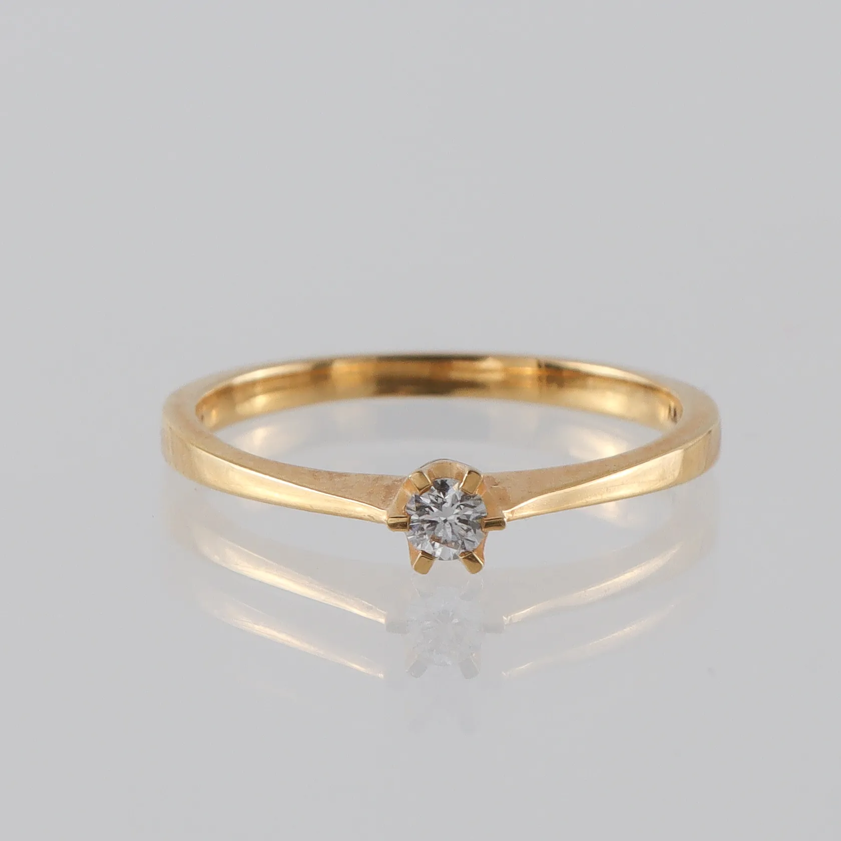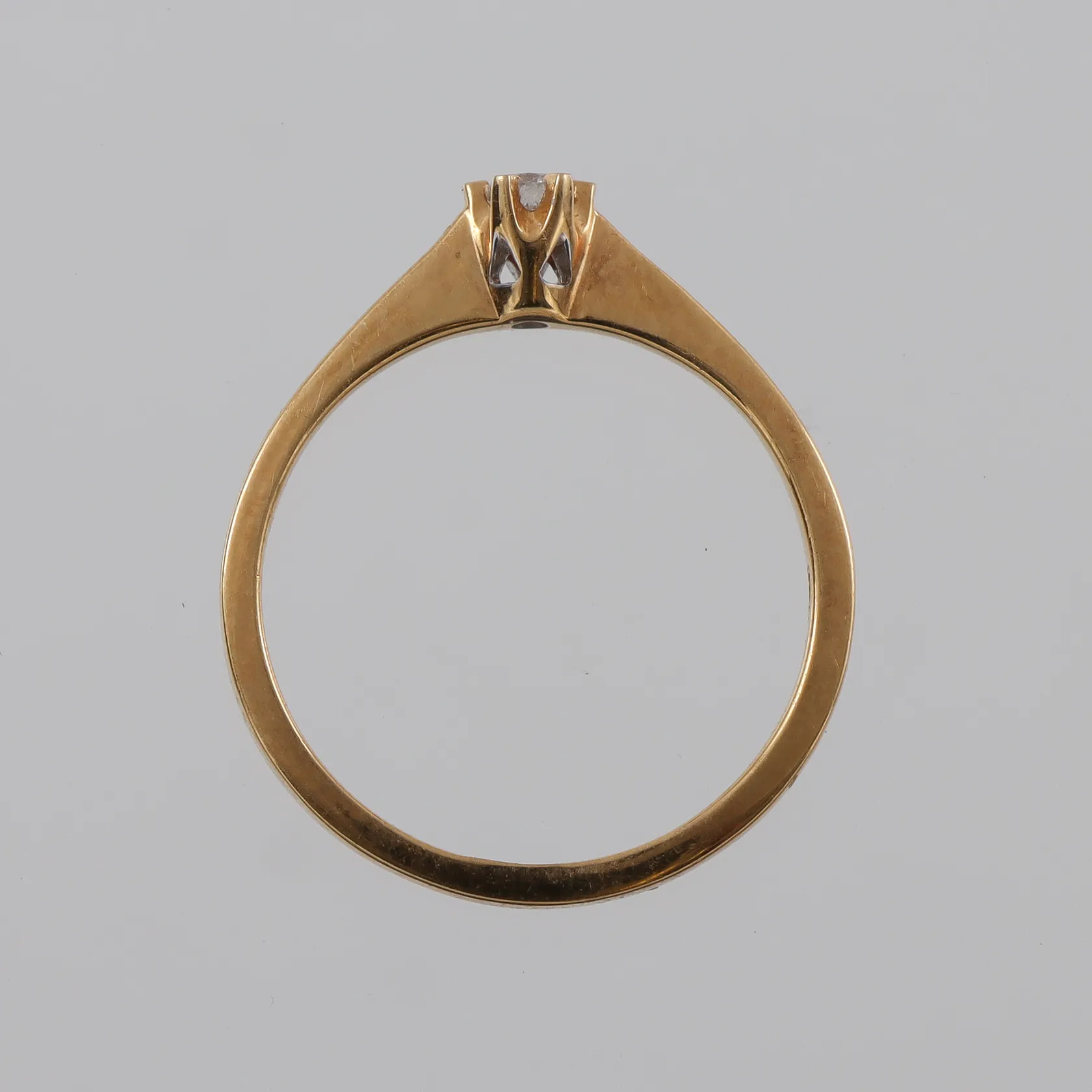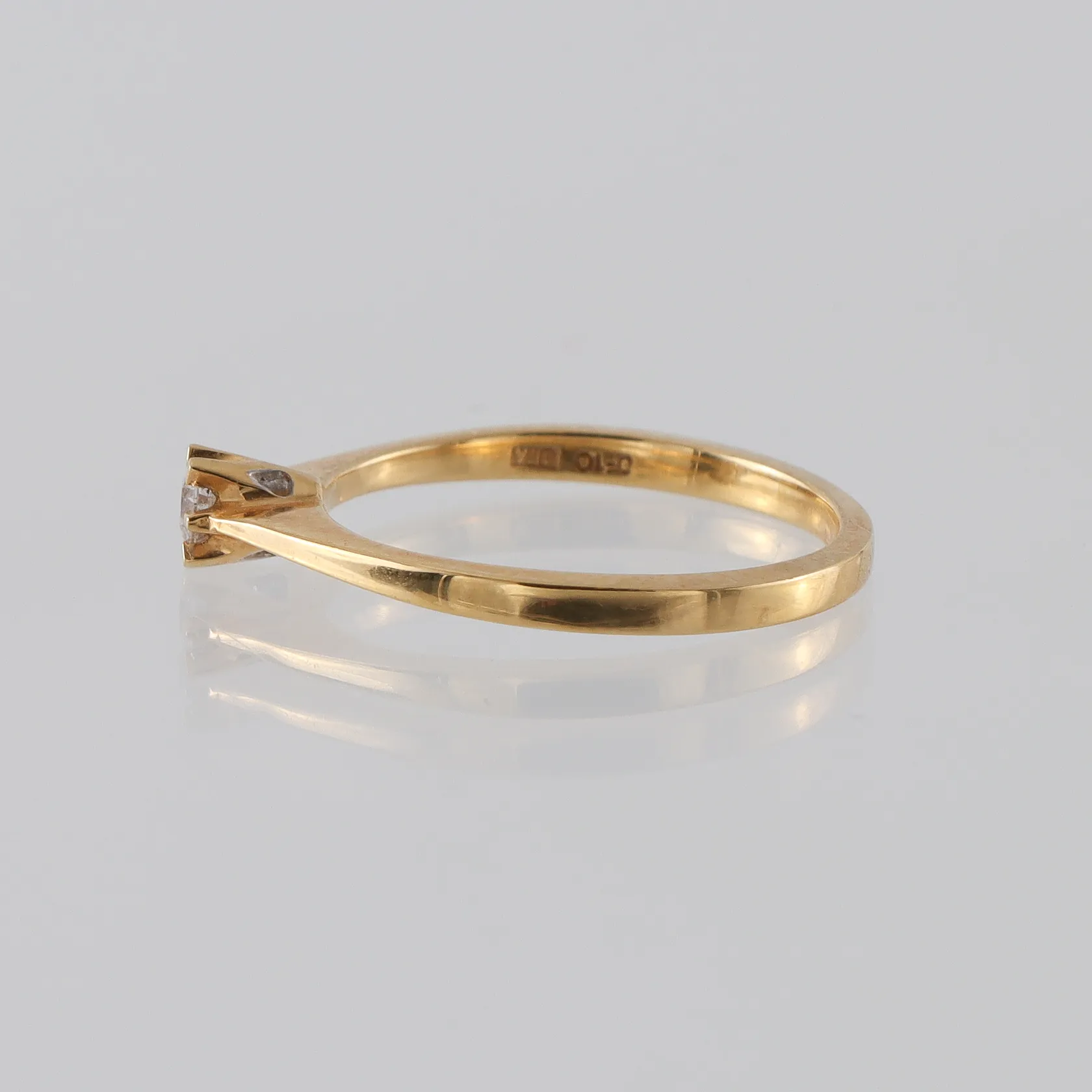 Ring med solitär diamant på 0.10 ct WV enligt inskription,GHA,storlek 17 mm,bredd 1.7-3.7 mm, 18k Vikt: 2,2 g.