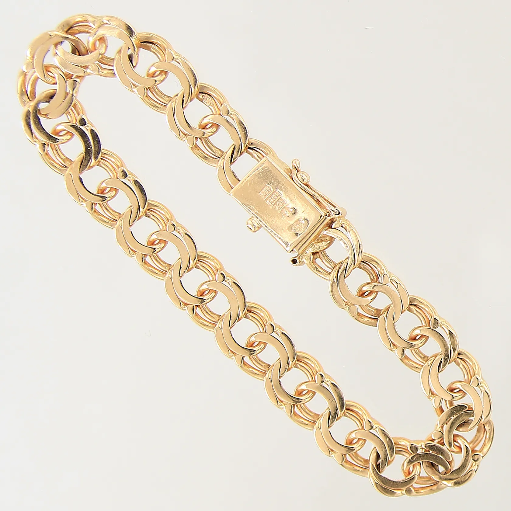 Armband Bismarck, längd 19,5cm, bredd 9,2mm, en låsåtta saknas, 18K Vikt: 25,7 g.