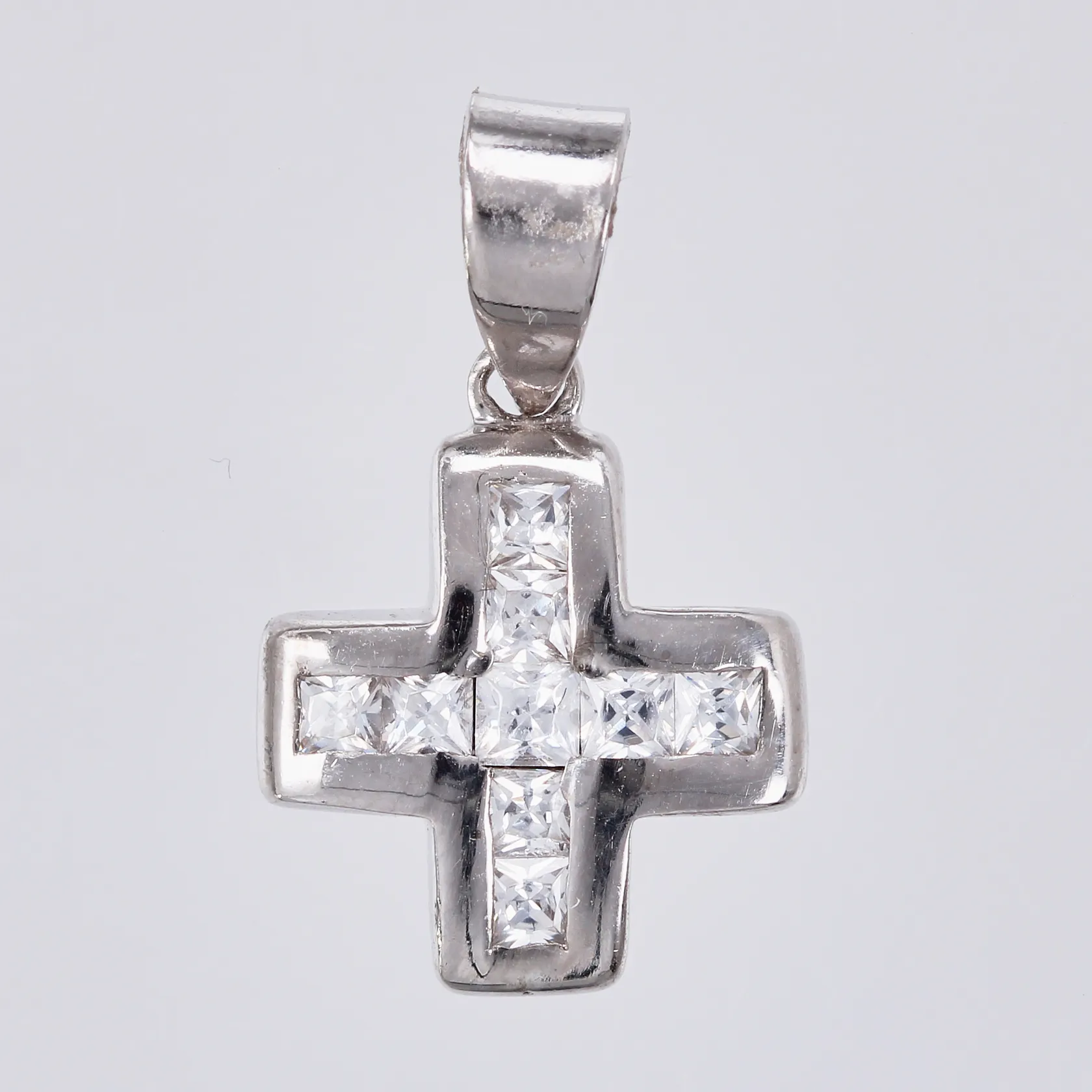 Hänge kors med vita stenar längd: ca 2cm bredd: ca 12mm 925/1000 silver Vikt: 1,5 g.