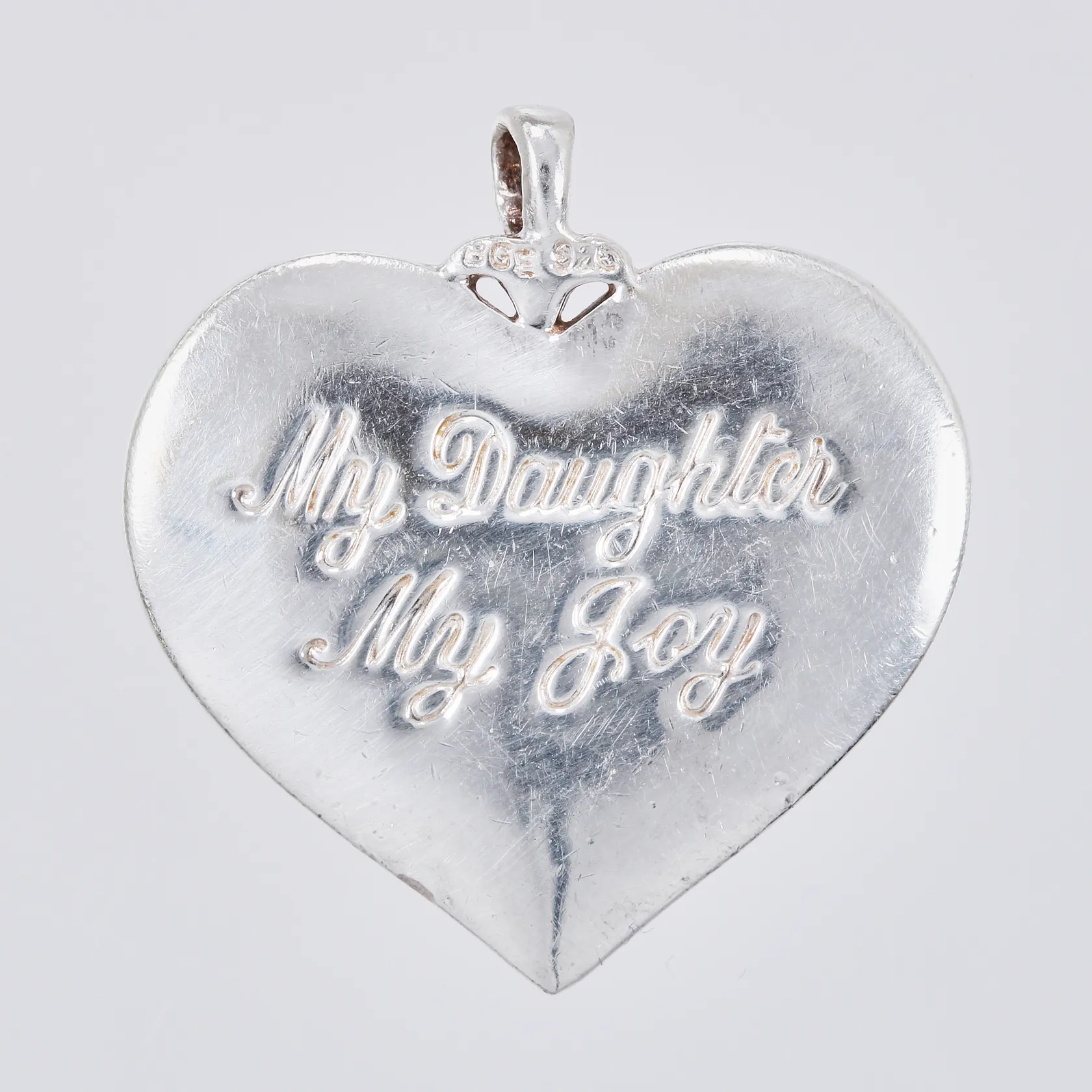 Hänge med diamant ca 1x0,01ct samt text My Daughter My Joy, längd ca 29mm, bredd ca 26mm, 925/1000 silver Vikt: 11 g.