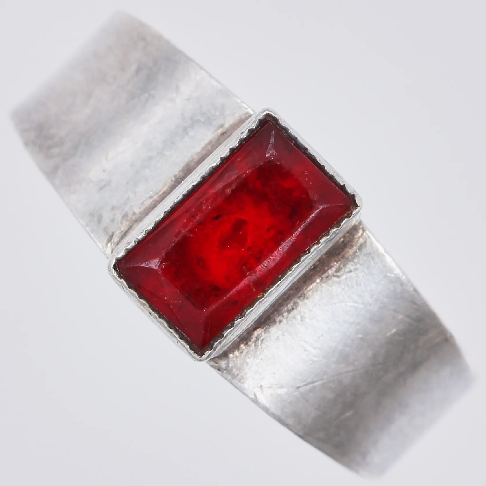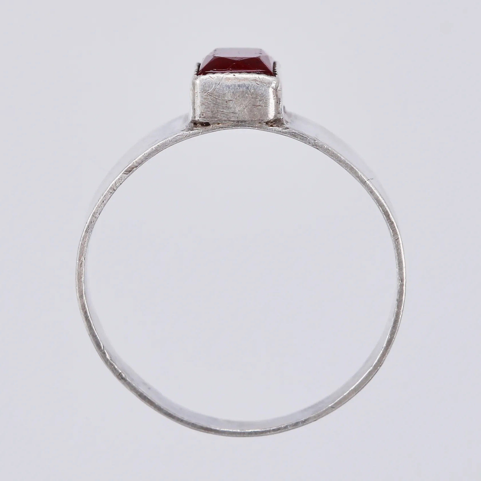 Ring med röd sten stl: ca 16 bredd: ca 3-8mm 835/1000 silver Vikt: 1,6 g.