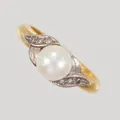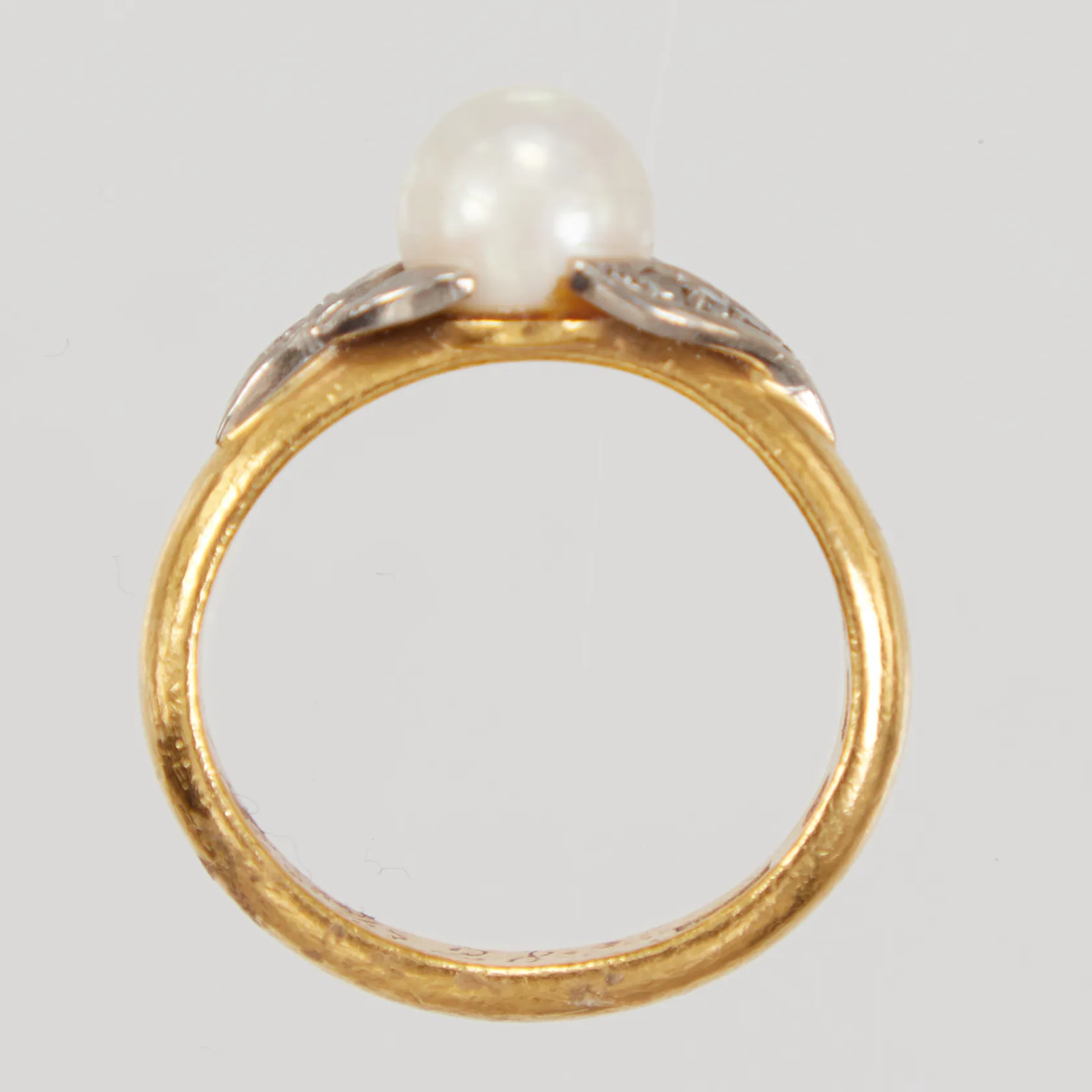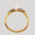 Ring med odlad pärla, stl 16½, bredd 3,3mm, pärlans Ø6,5mm, åttkantslipade diamanter 6x0,01ct, gravyr, 23K, Vikt: 6,4 g.