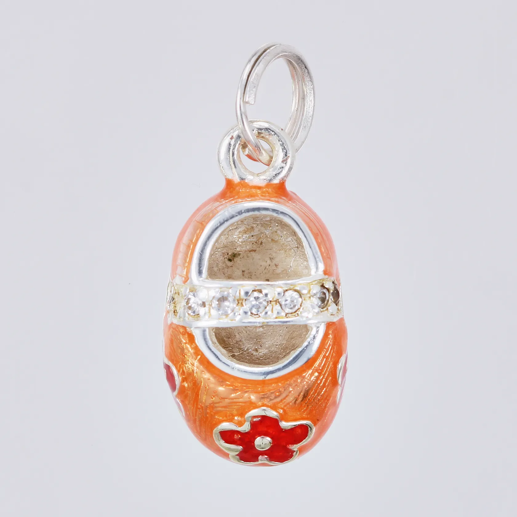 Hänge sko med emalj och vita stenar längd: ca 2,2cm bredd: ca 10mm 925/1000 silver Vikt: 3,2 g.