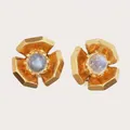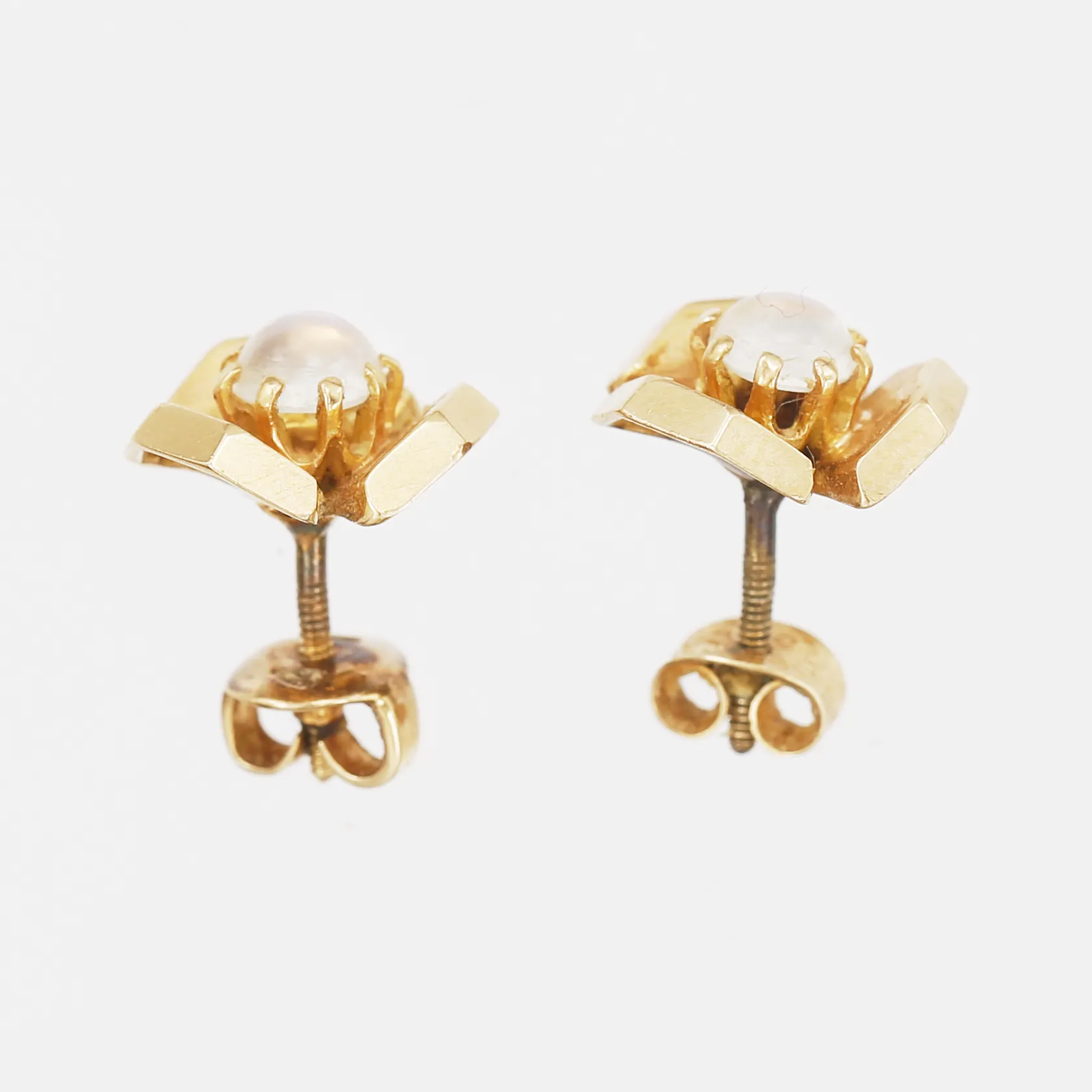 Ett par örhängen med månstenar, Ø10mm, skruvsift, en snurrebuss ej original, 18K guld Vikt: 2,6 g.
