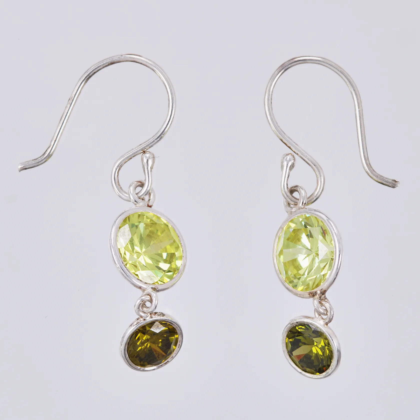 Ett par örhängen med gröna stenar längd: ca 3,2cm bredd: ca 6-9mm 925/1000 silver Vikt: 2,8 g.