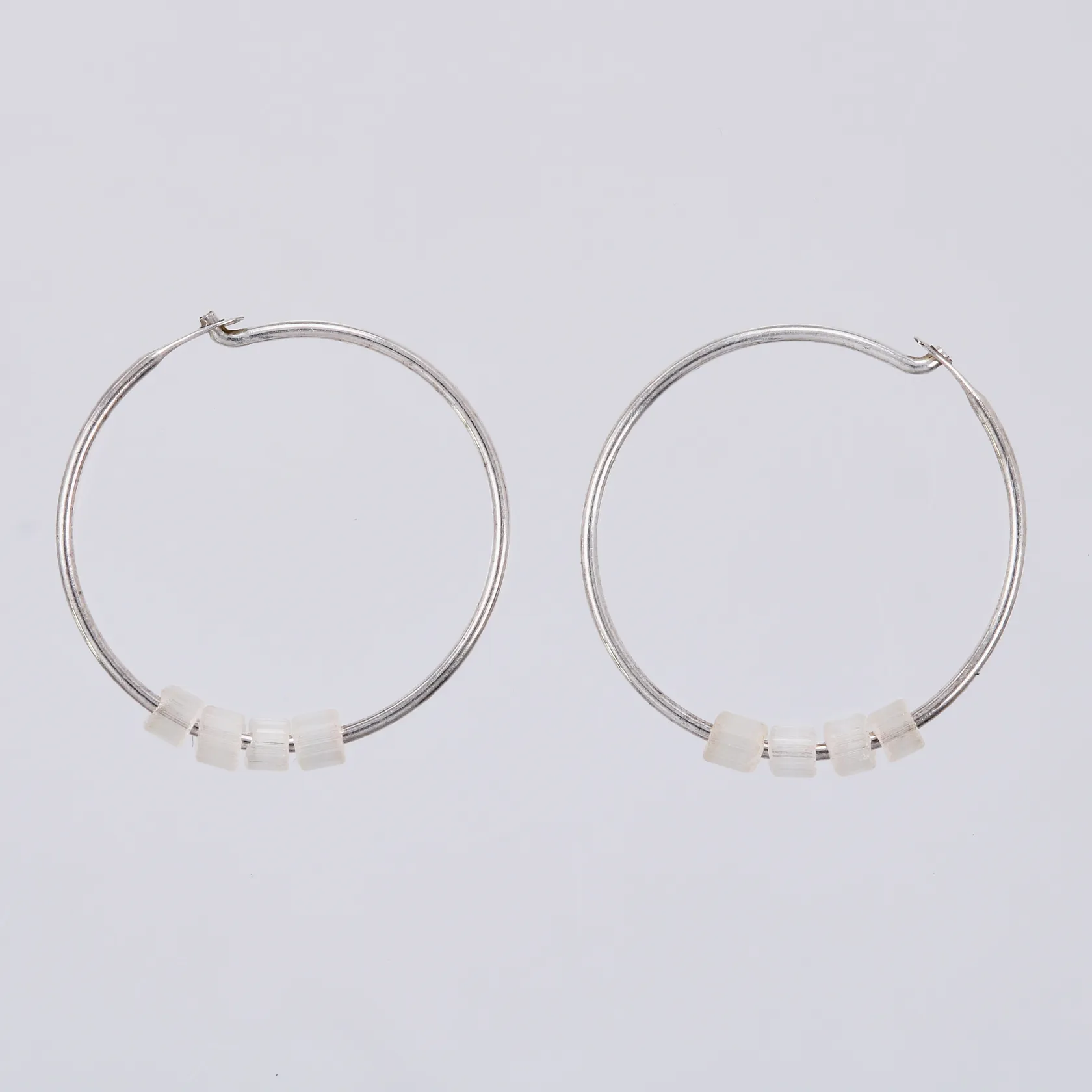 Ett par örhängen med vita plastdetaljer Ø ca 19mm 830/1000 silver Vikt: 0,6 g.